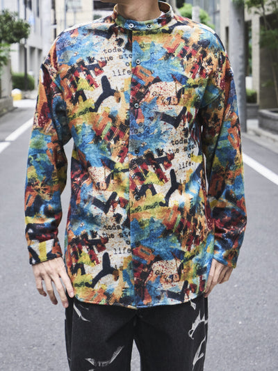 【NEW】"漆黒の太陽"ペイズリー柄ロングポイントカラーシャツ