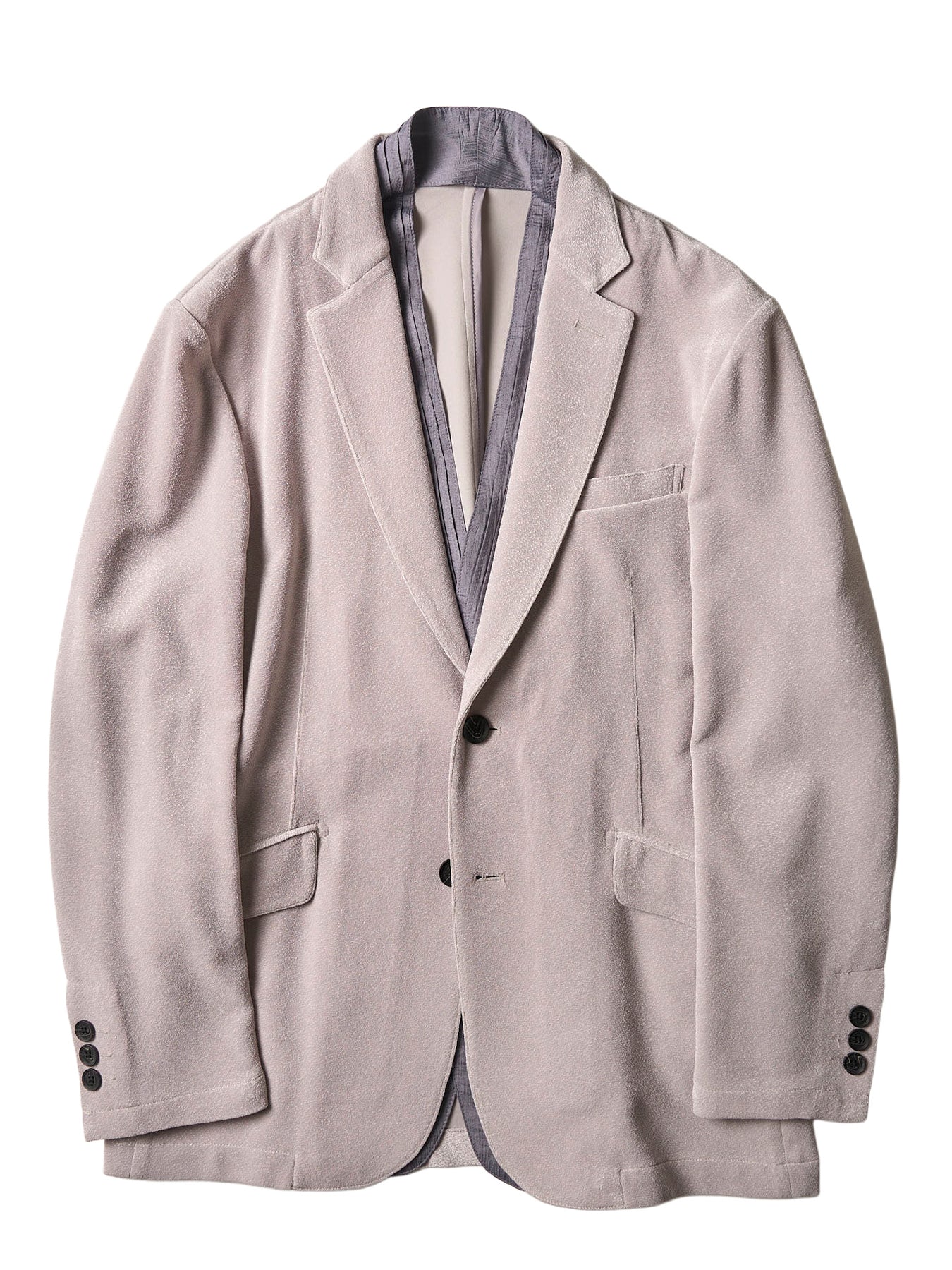 表面のさりげない立体感と上品な光沢が、カジュアルからきれいめまで幅広いスタイルに対応する万能ジャケットです。