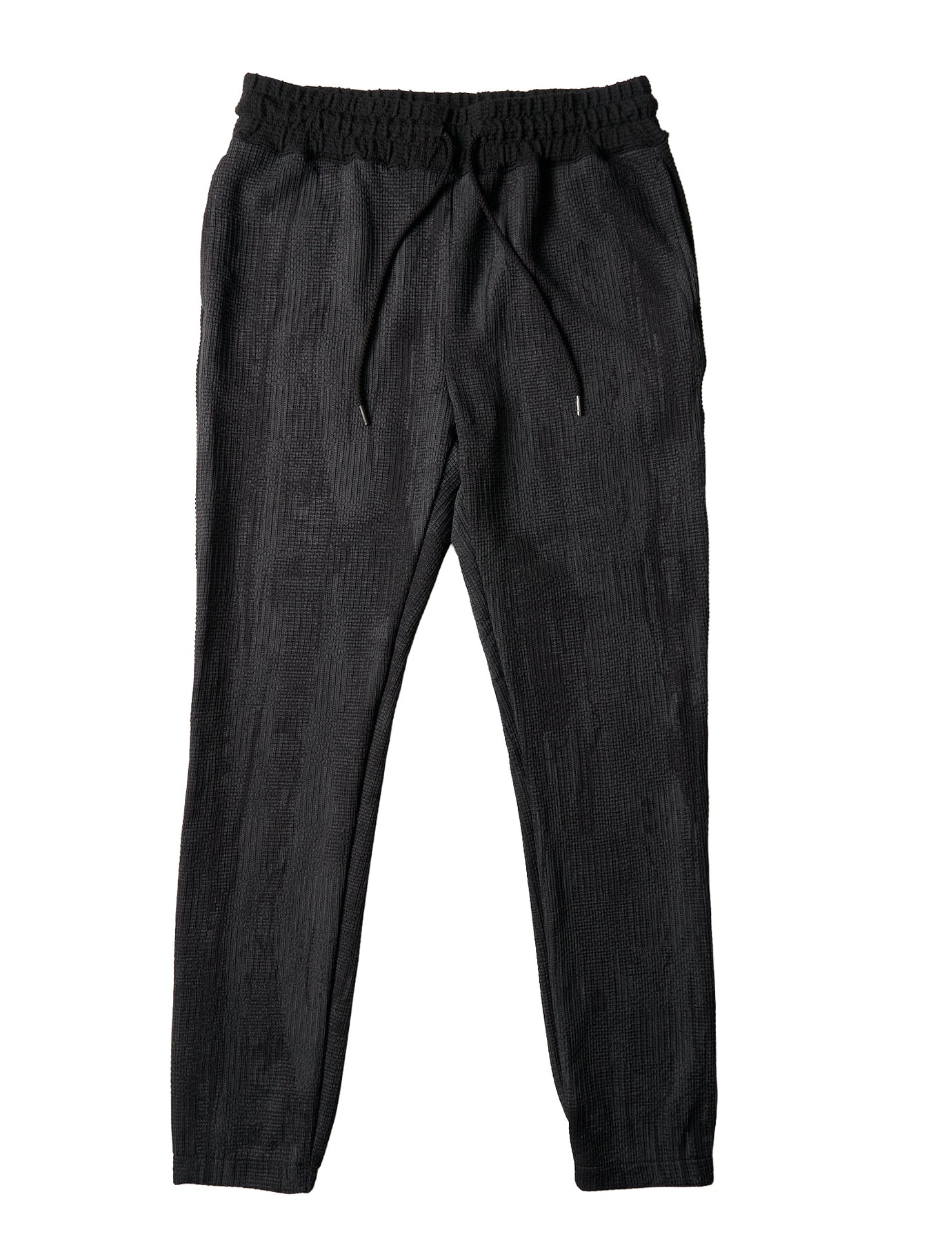 立体感のある素材感とジョガーパンツデザインが特徴で、カジュアルながらも存在感のある一本に仕上がっています。