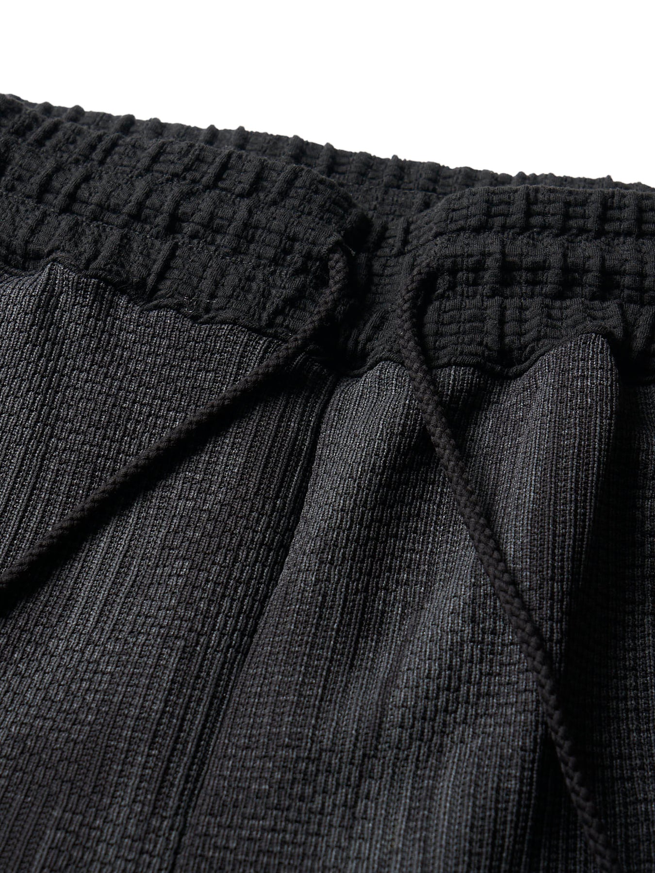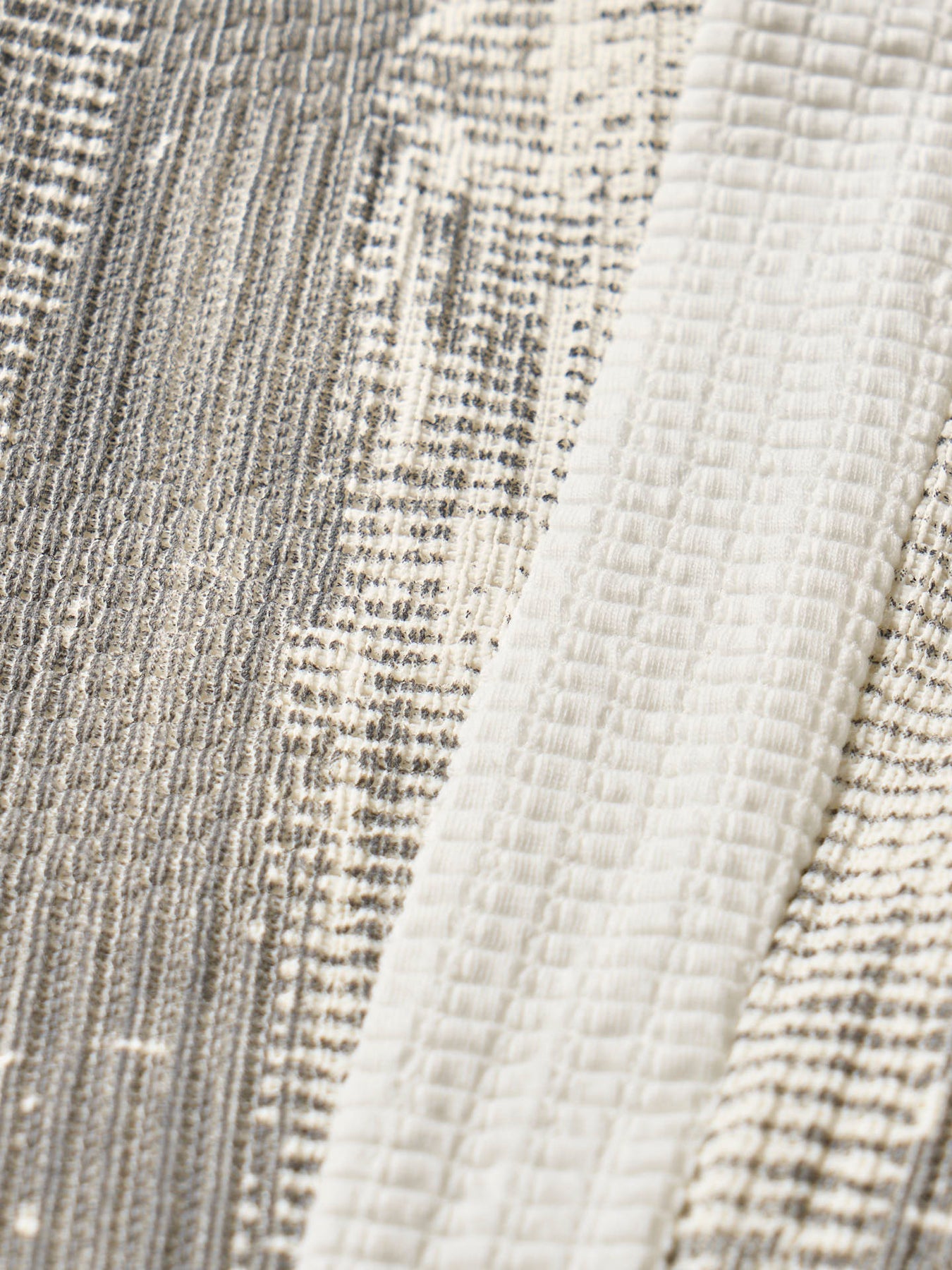 凹凸感のあるワッフル素材とジャガード織りによる柄が、シンプルながらも奥行きのある表情を演出。