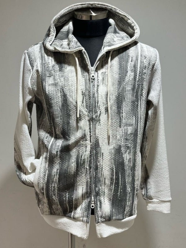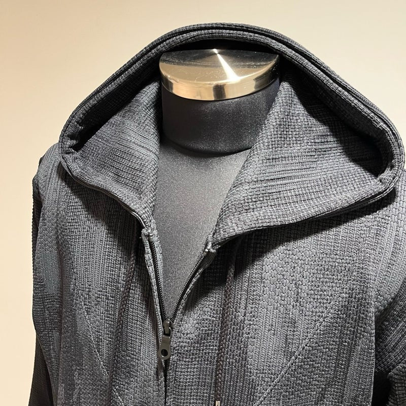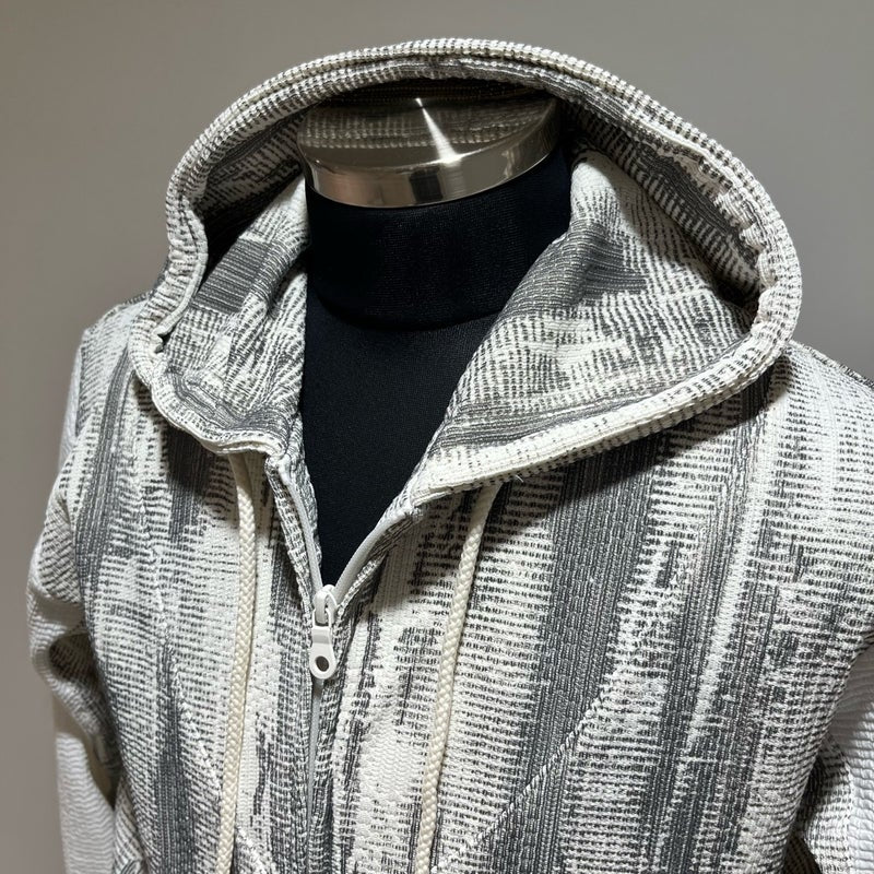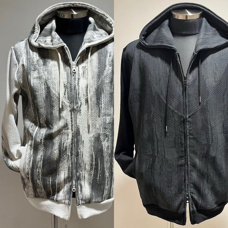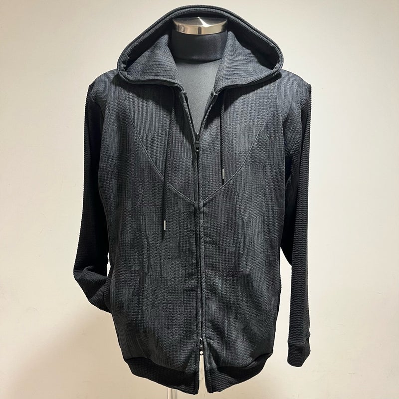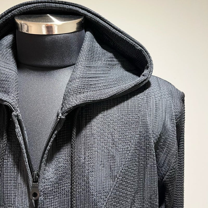 ワッフル×ジャガードの切り替えデザインが目を引く、ZIPフーディー。