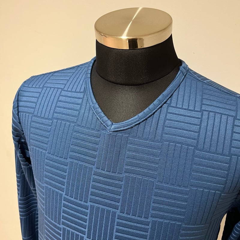 シャープなVネックが首元をすっきりと見せ、ジャケットやブルゾンのインナーとしても相性抜群。