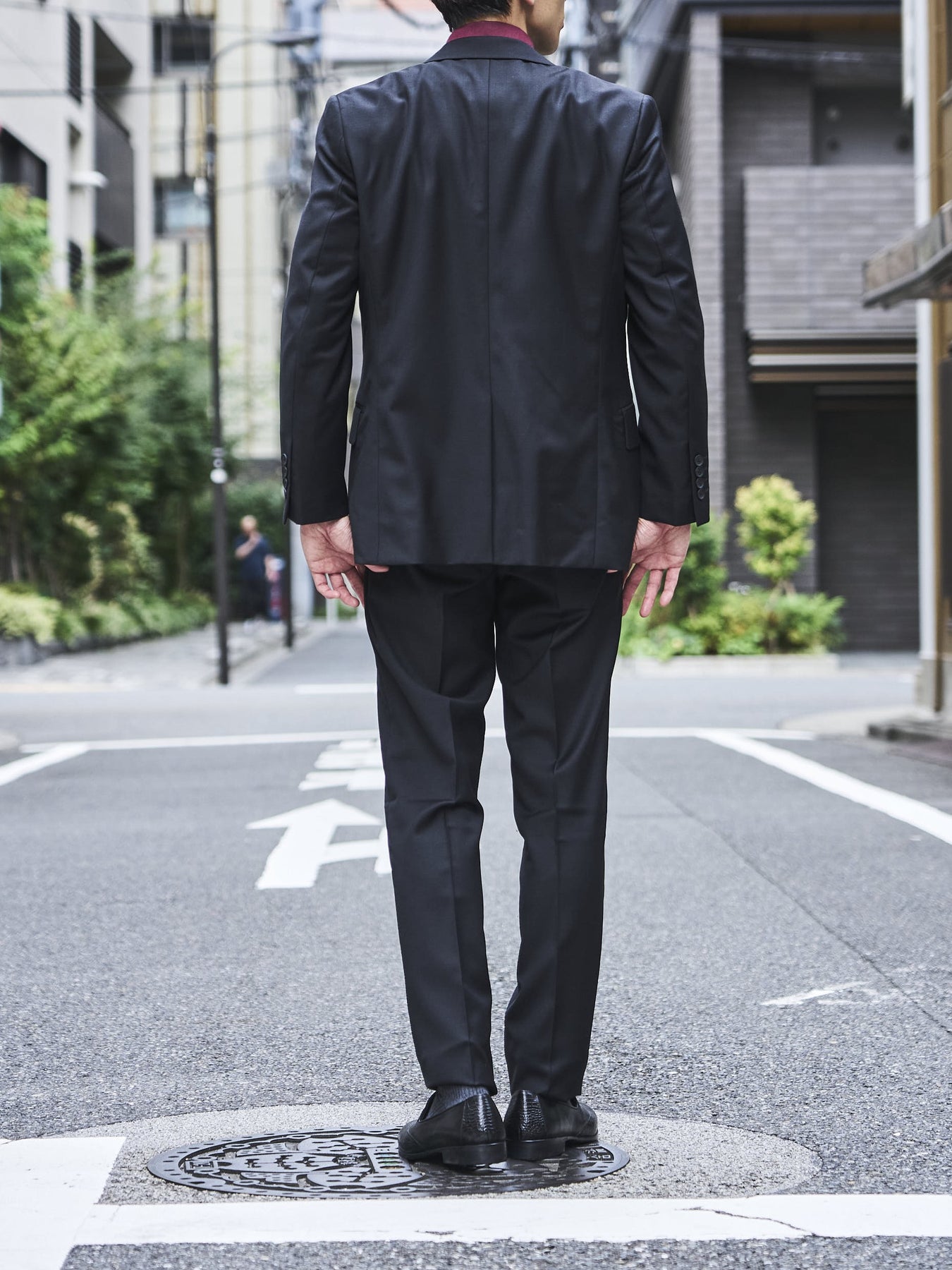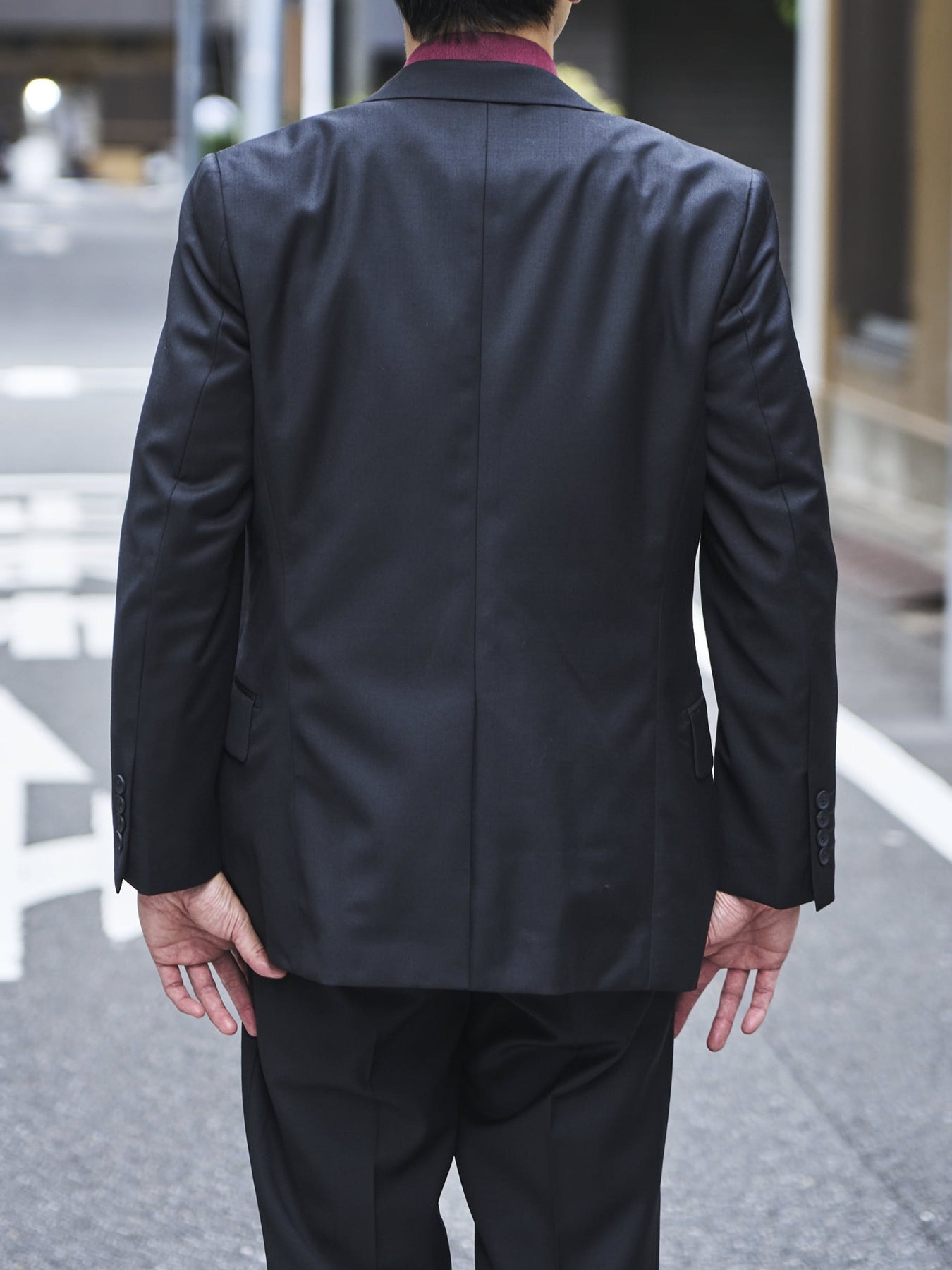 どんなシーンでも活躍する無地を採用したスリーピーススーツは、ダークネイビーとブラックの2色展開となっております。
