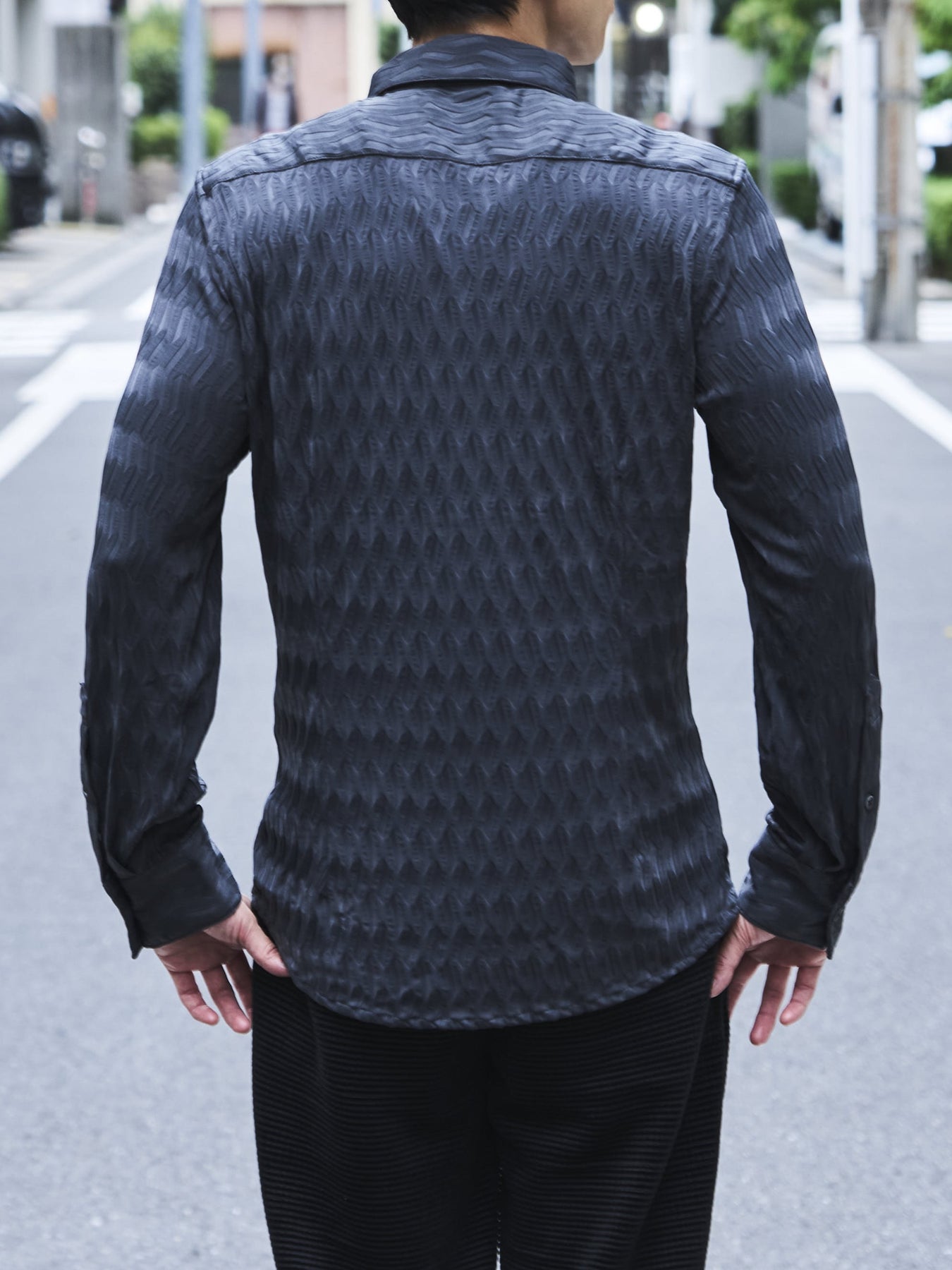 Regular price ¥20,900 - Pointsメッシュジャガードカットソー素材を採用し、ナローカラーシャツに落とし込みました。