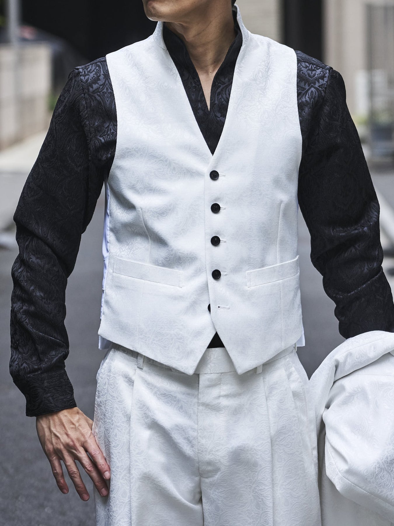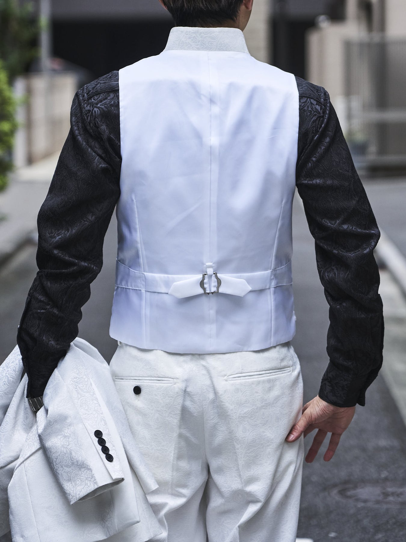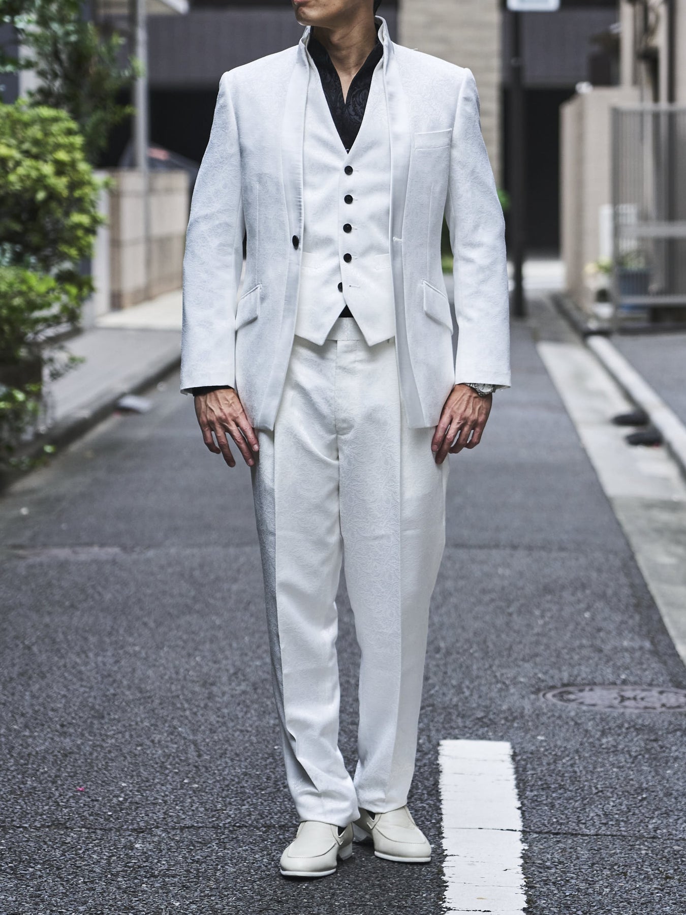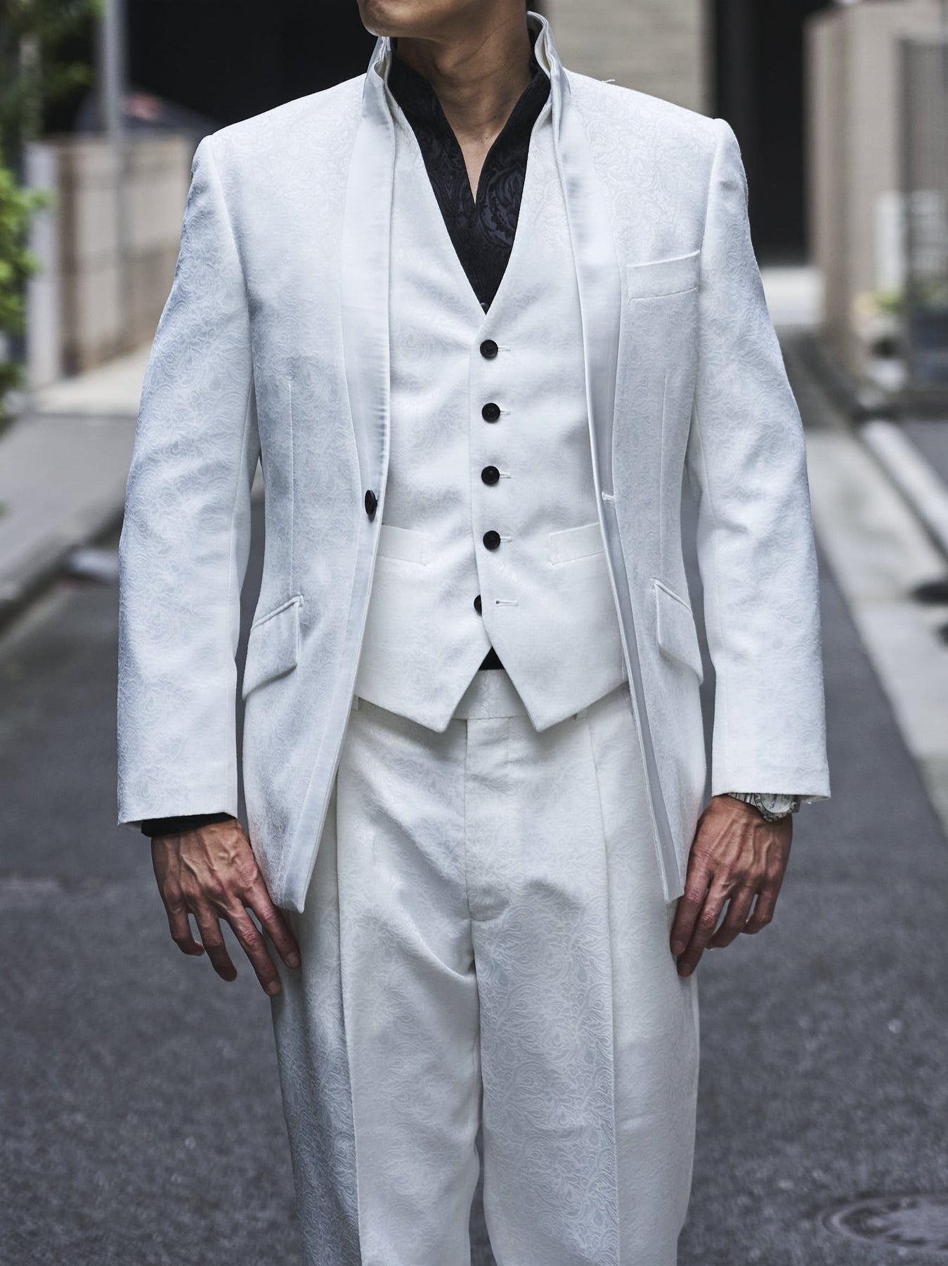 パーティーシーンで活躍するスタンド拝見使いの新型スリーピーススーツは、ホワイトとブラックの2色展開。