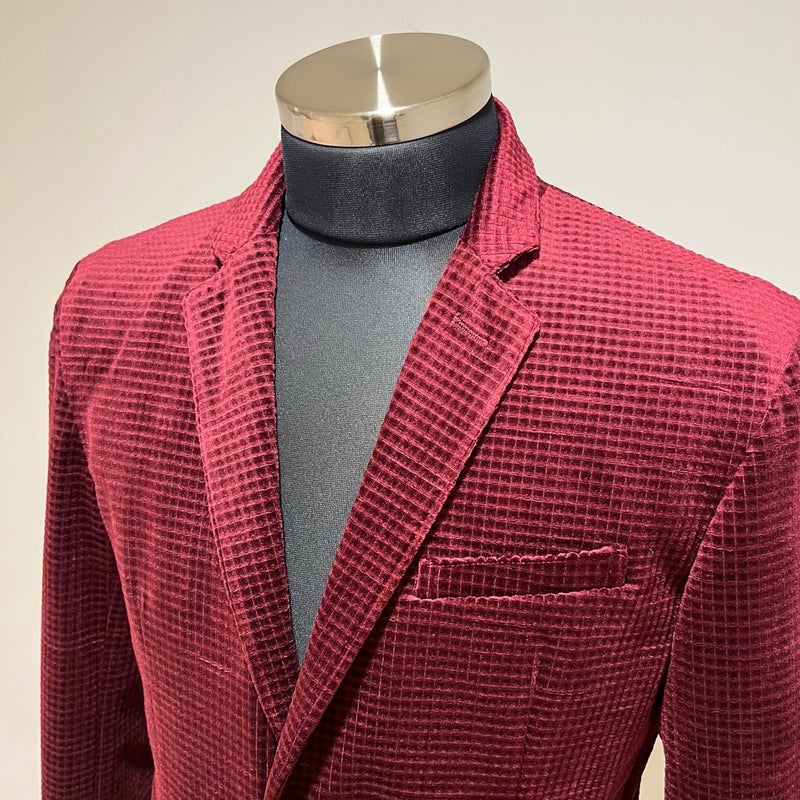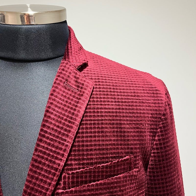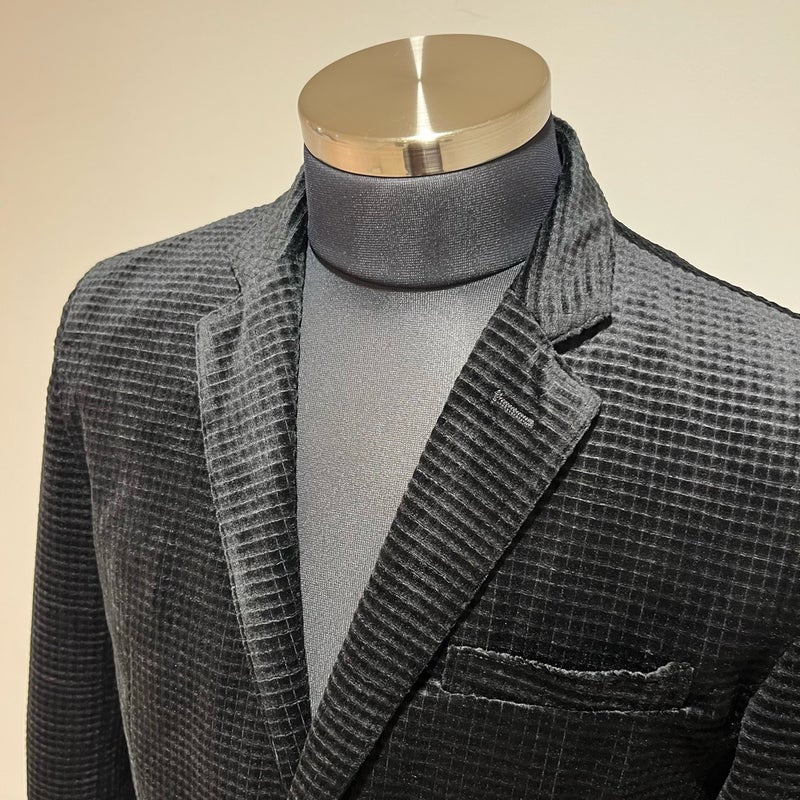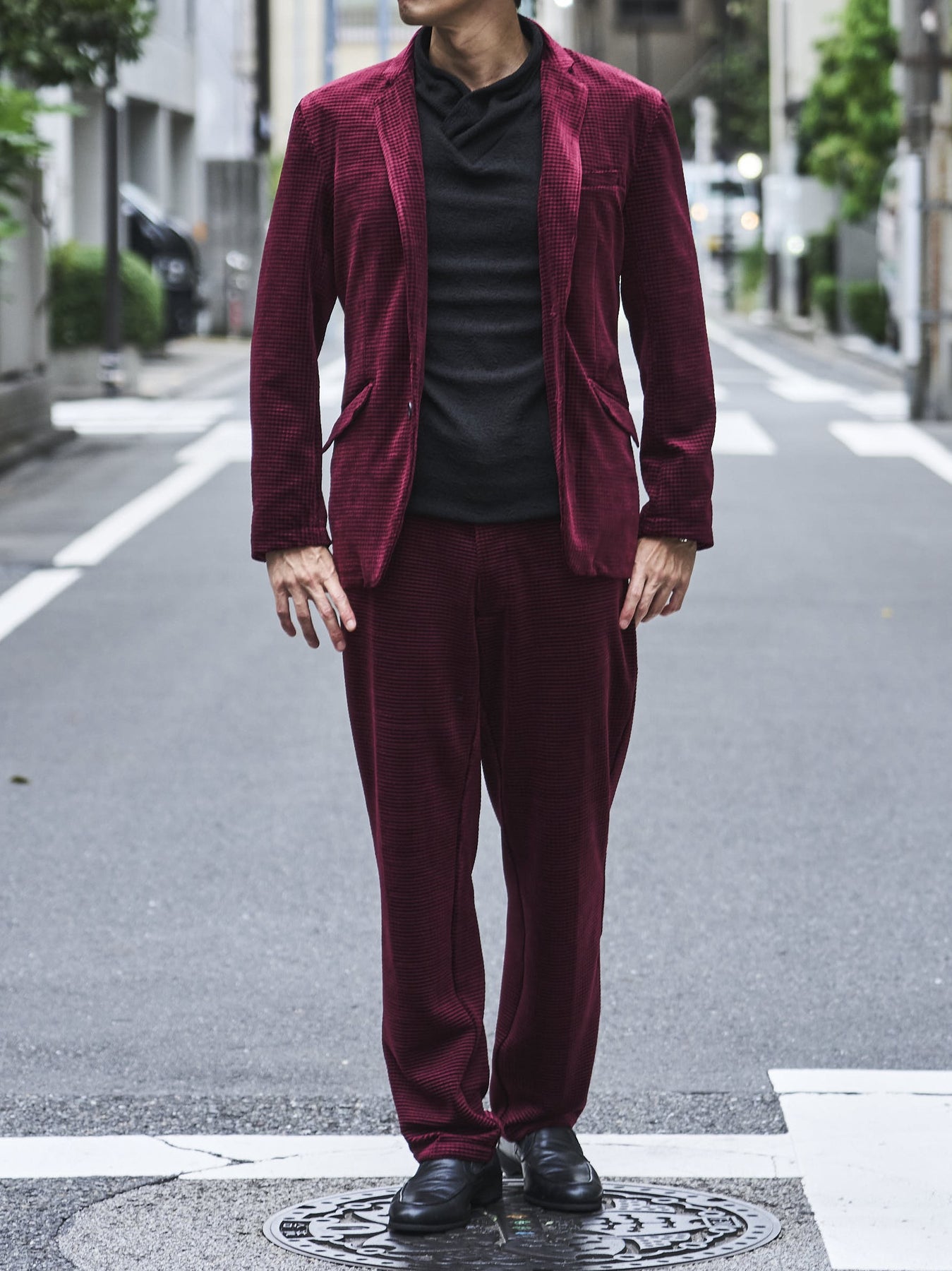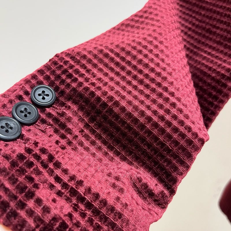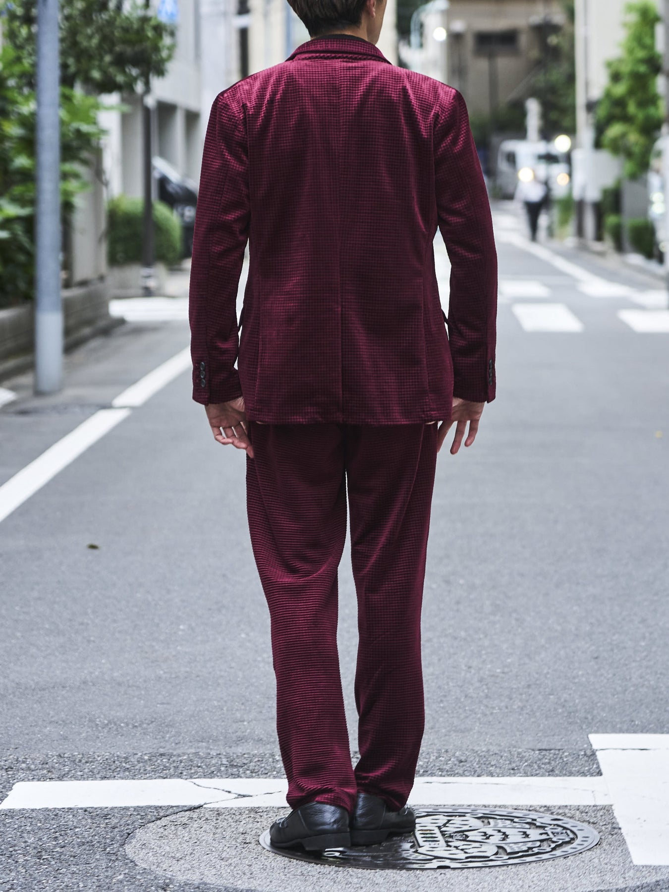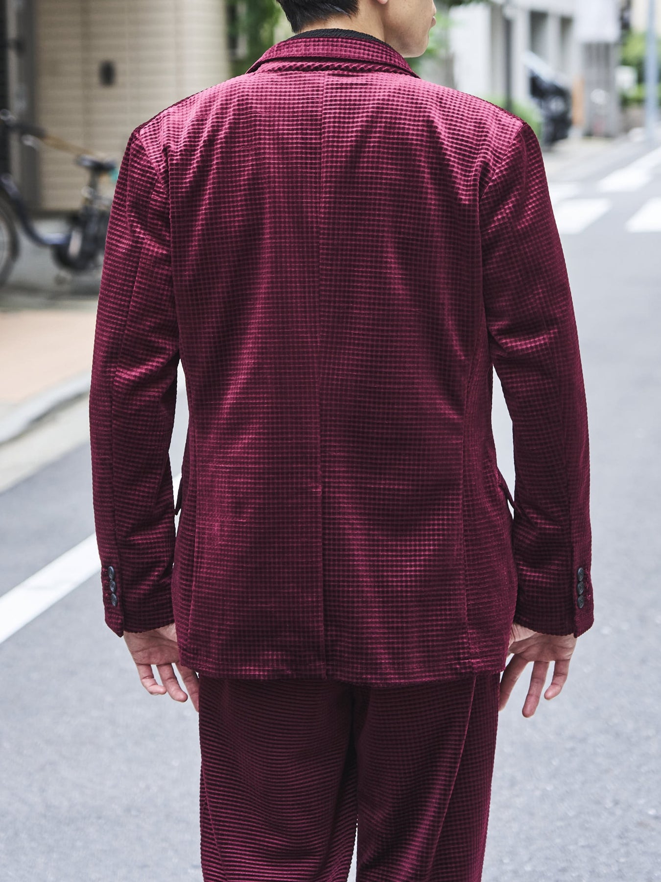 光沢ベロア素材を採用し、テーラードジャケットデザインに落とし込みました。
