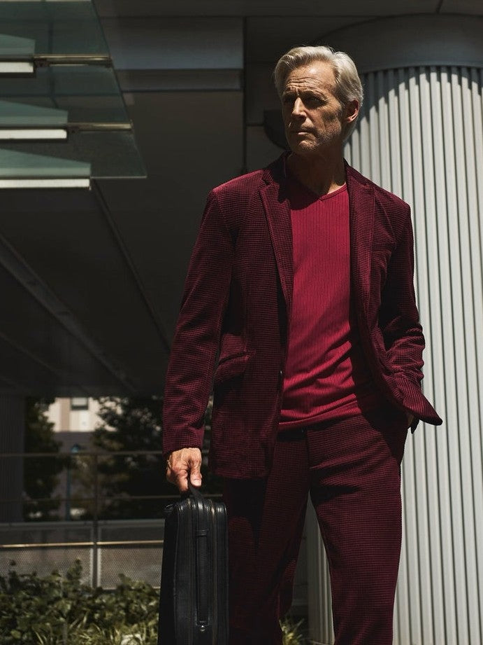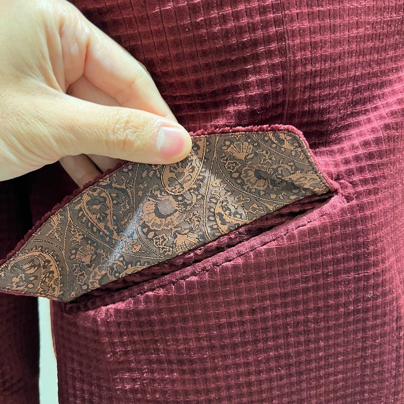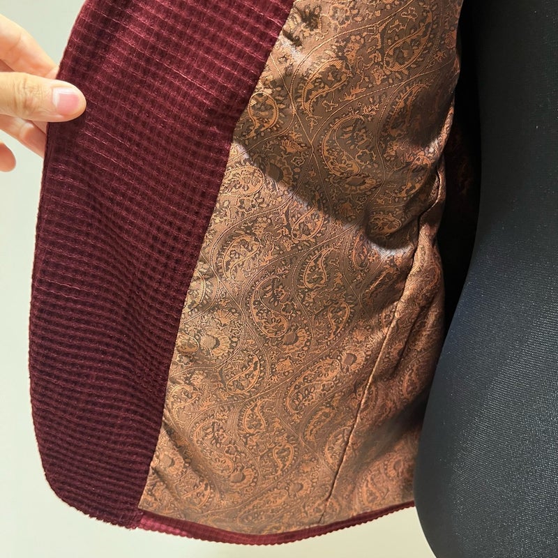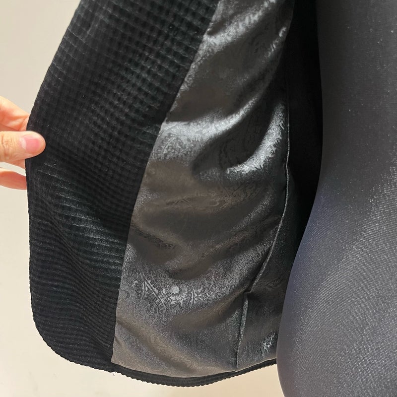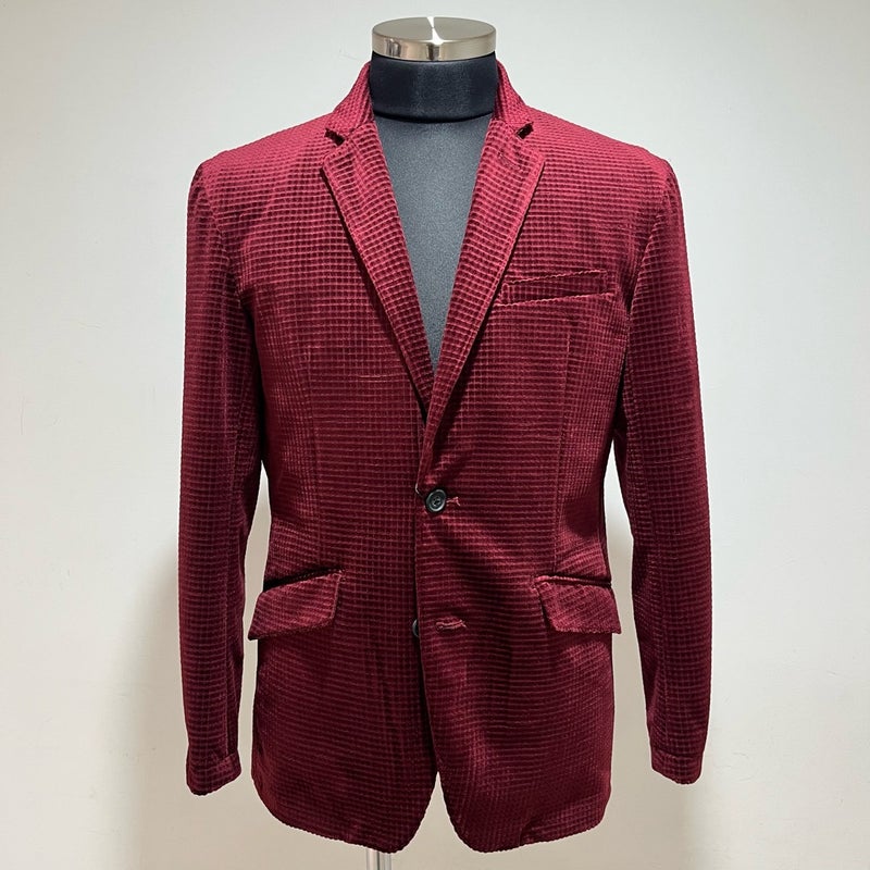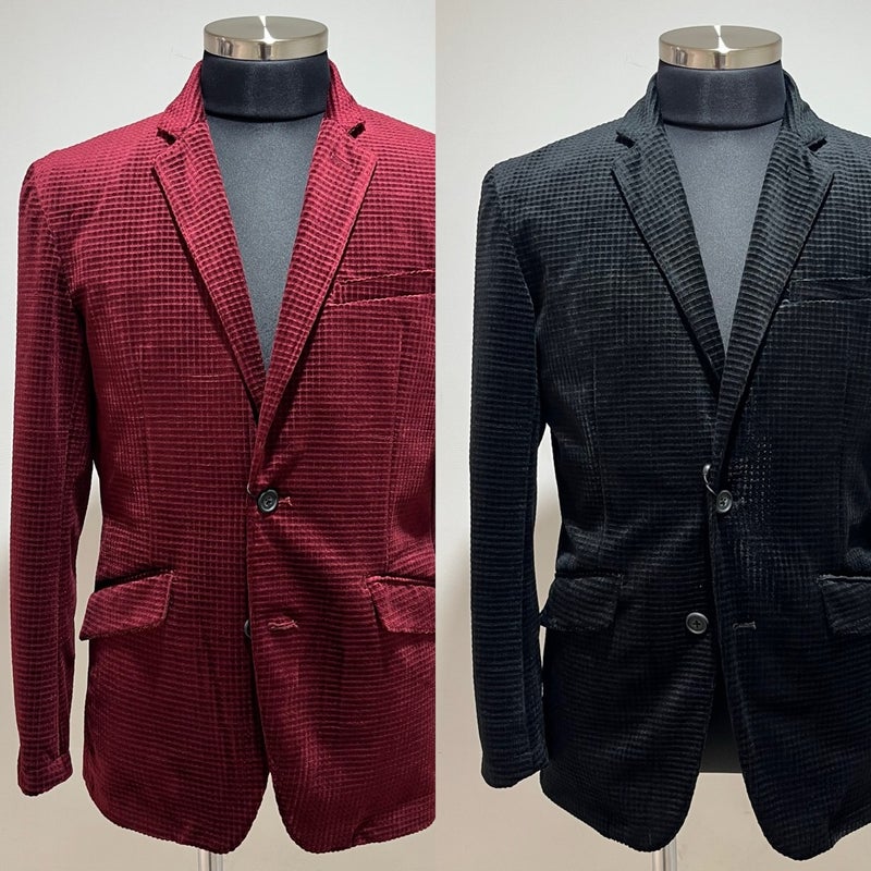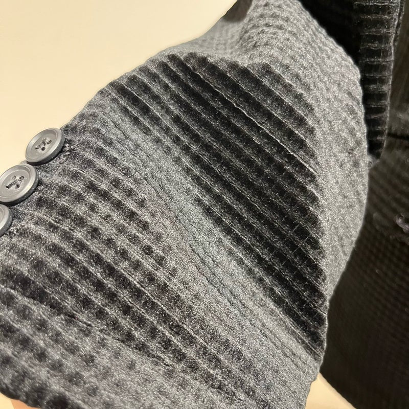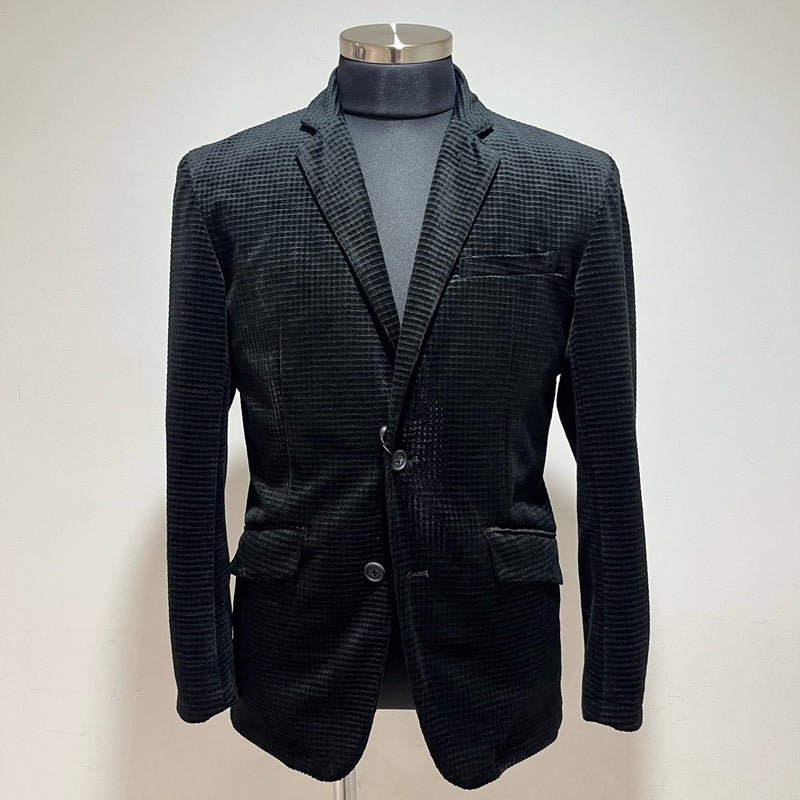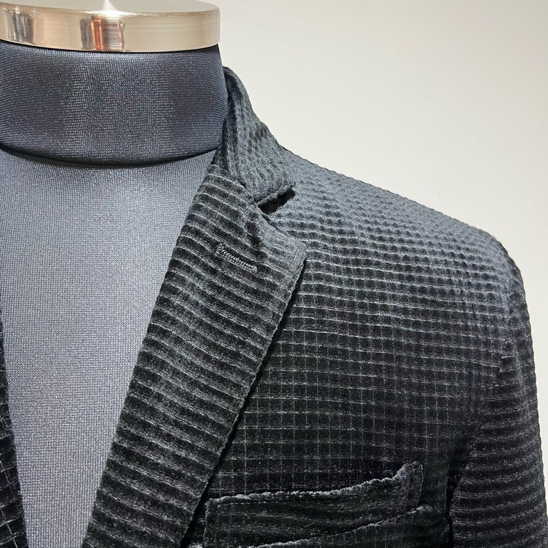 光沢ベロア素材を採用し、テーラードジャケットデザインに落とし込みました。