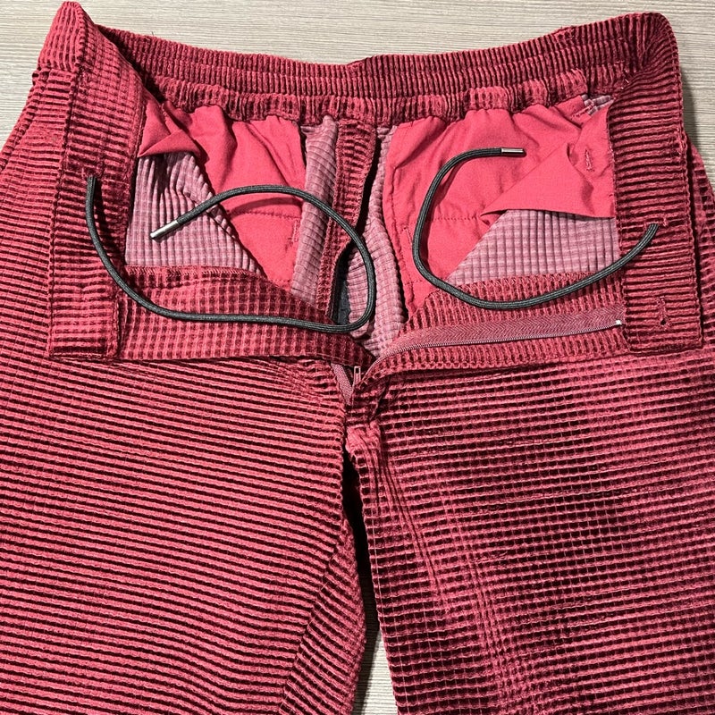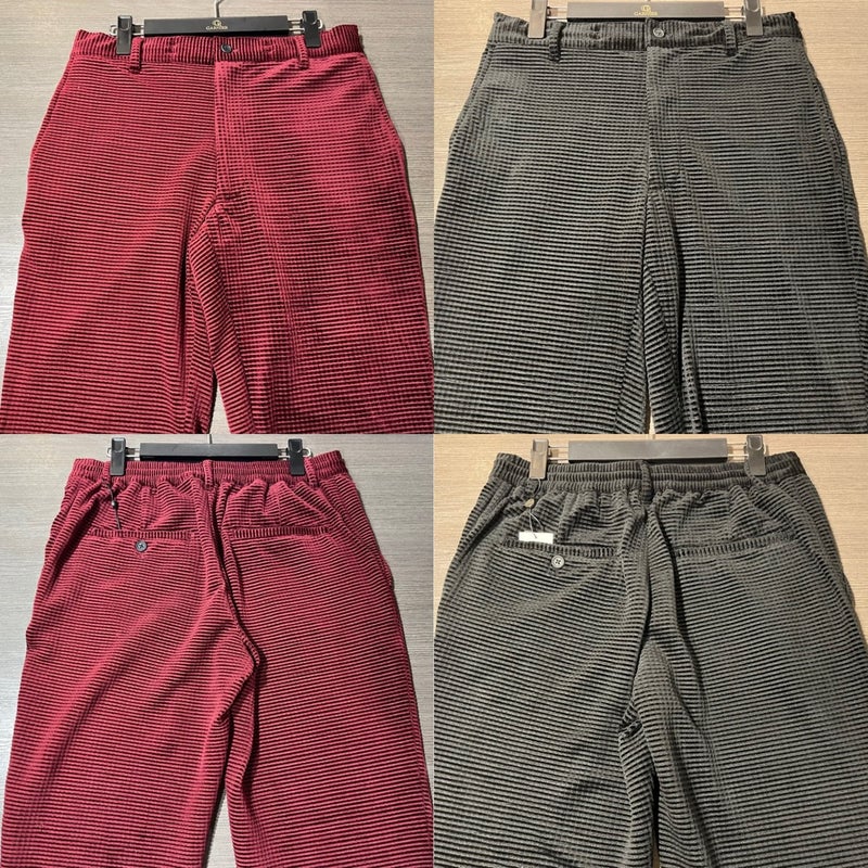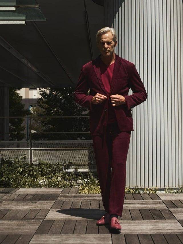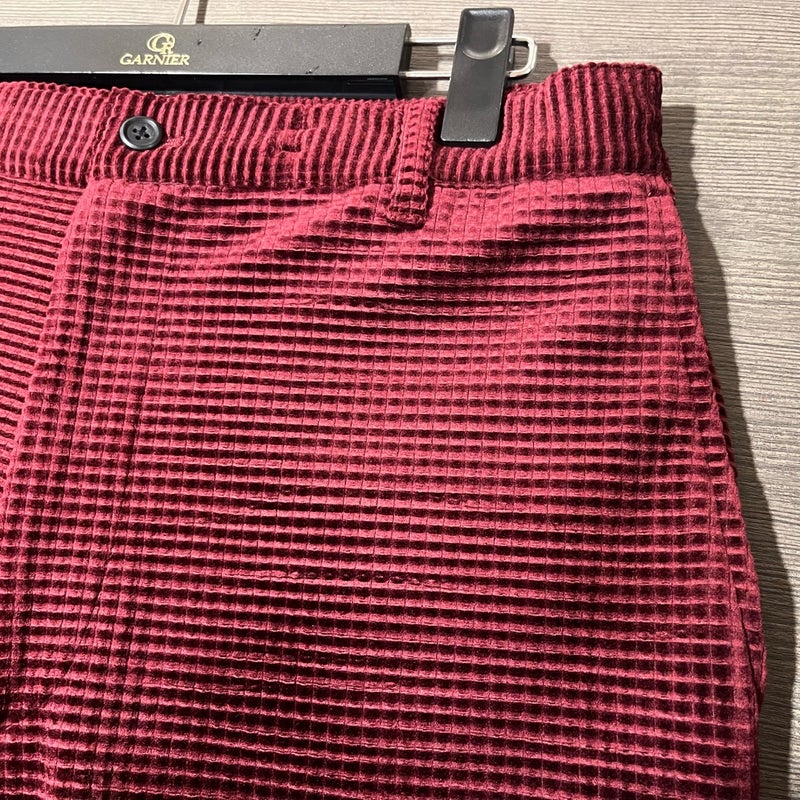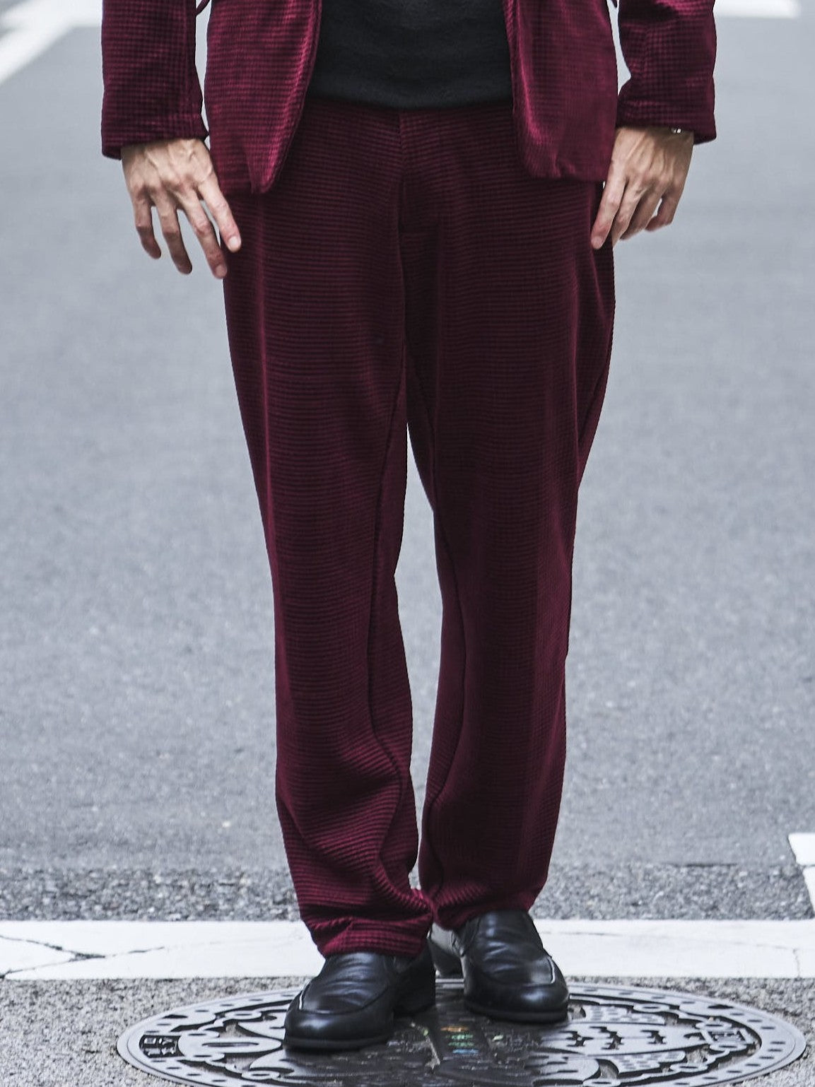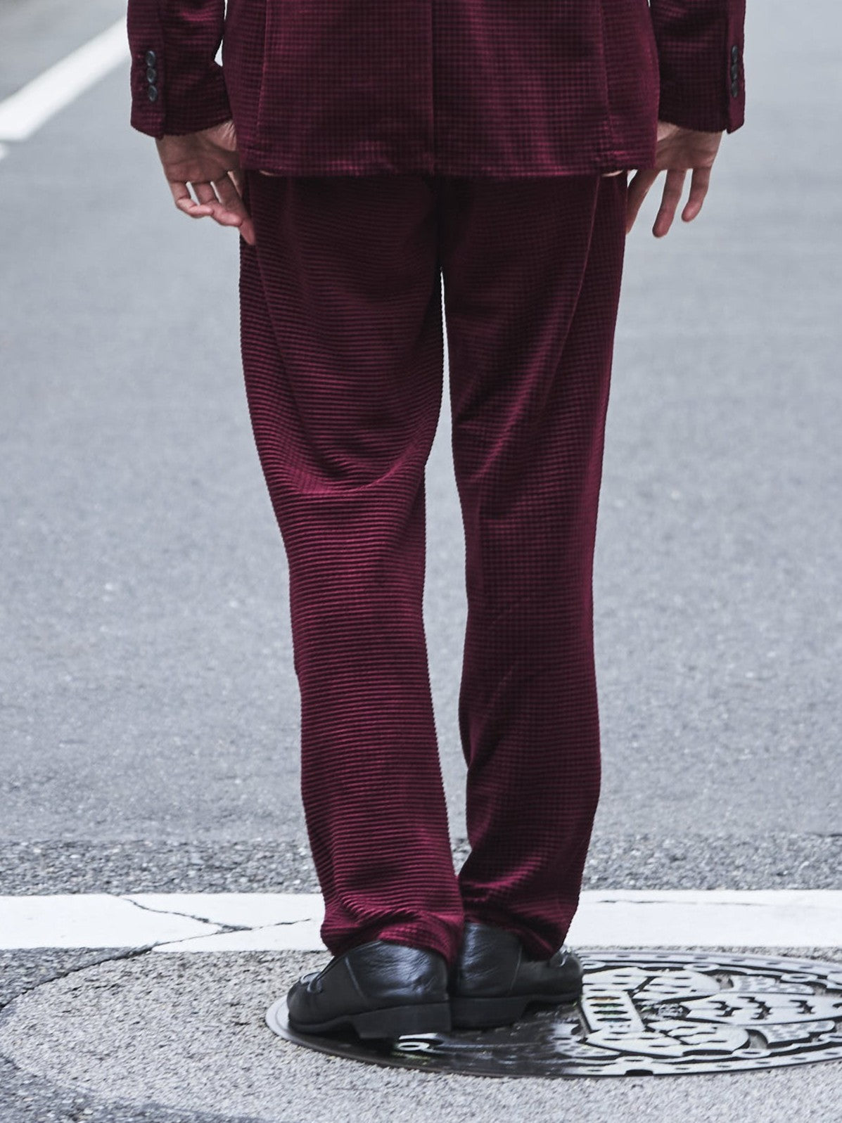 光沢ベロア素材を採用し、イージースラックスデザインに落とし込みました。
