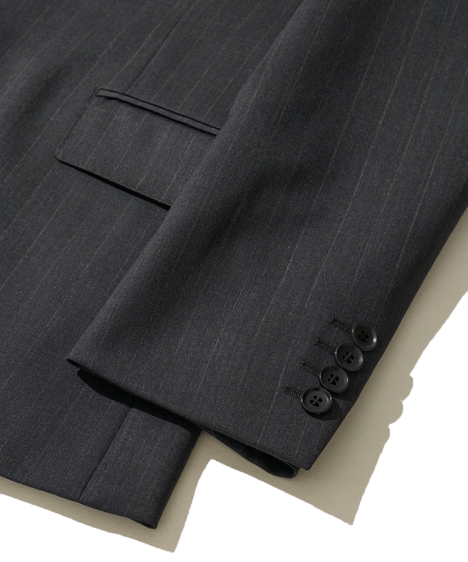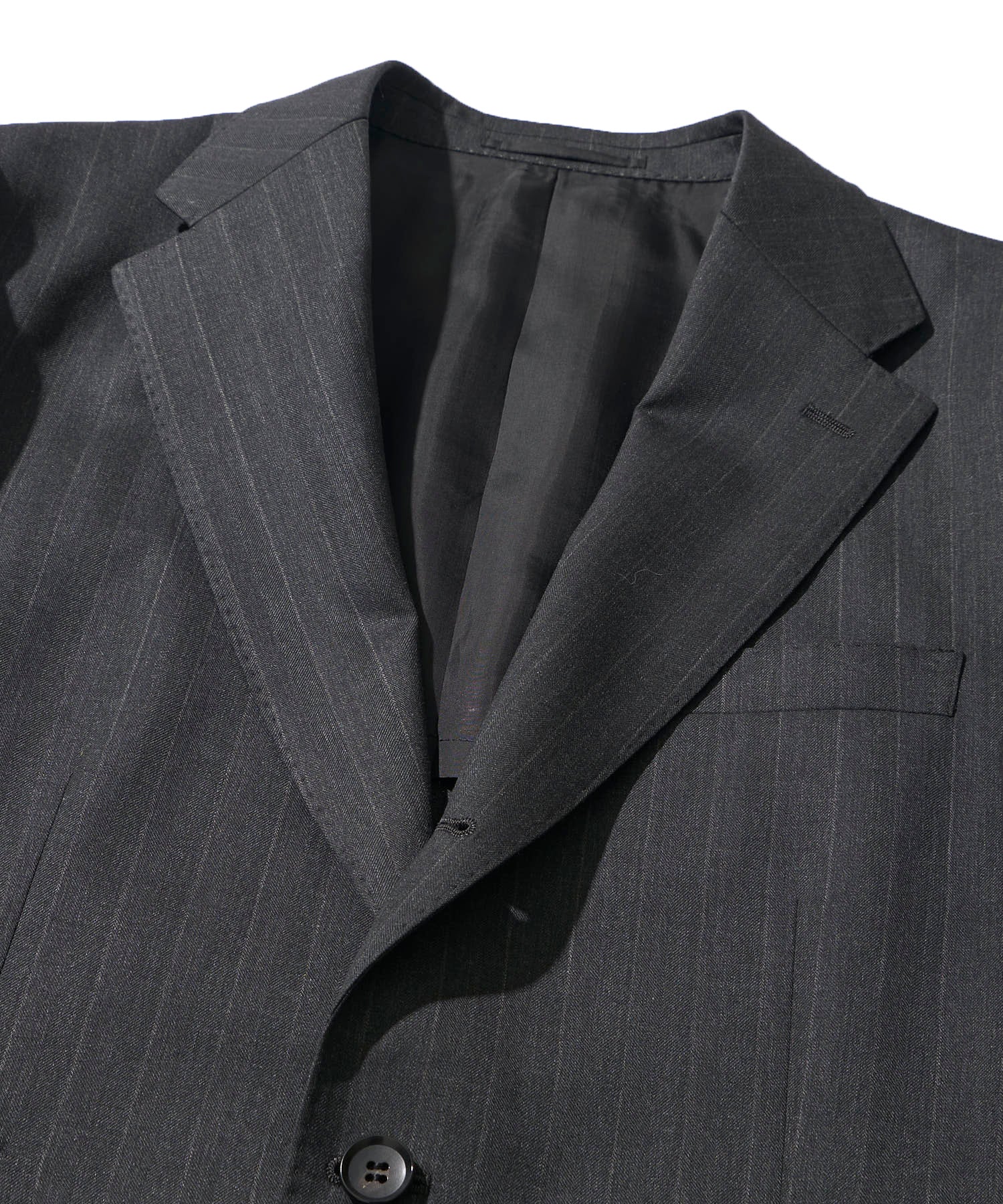 ・約2cmの太めチョークストライプ。裏地キュプラ100%+本水牛ボタン。