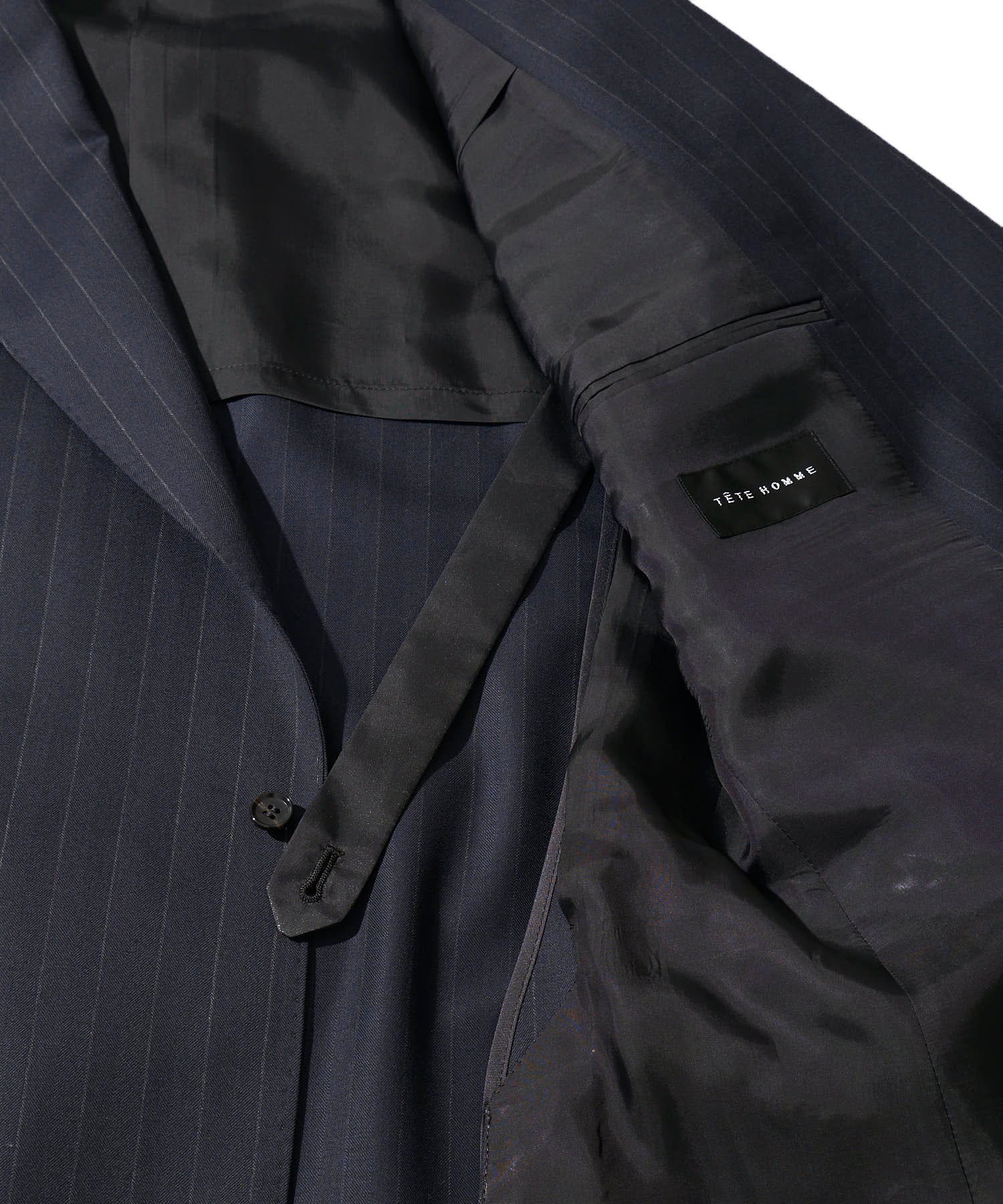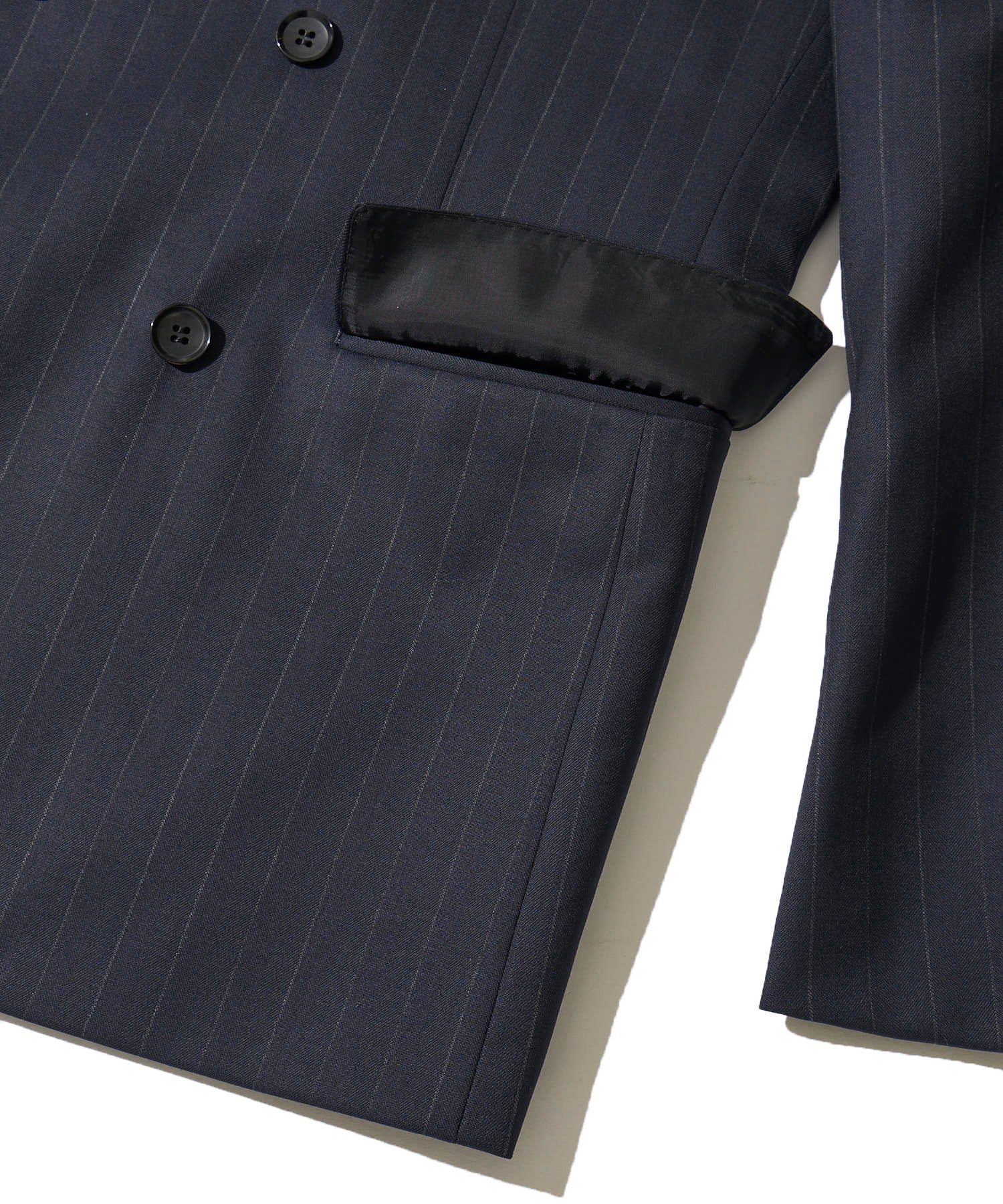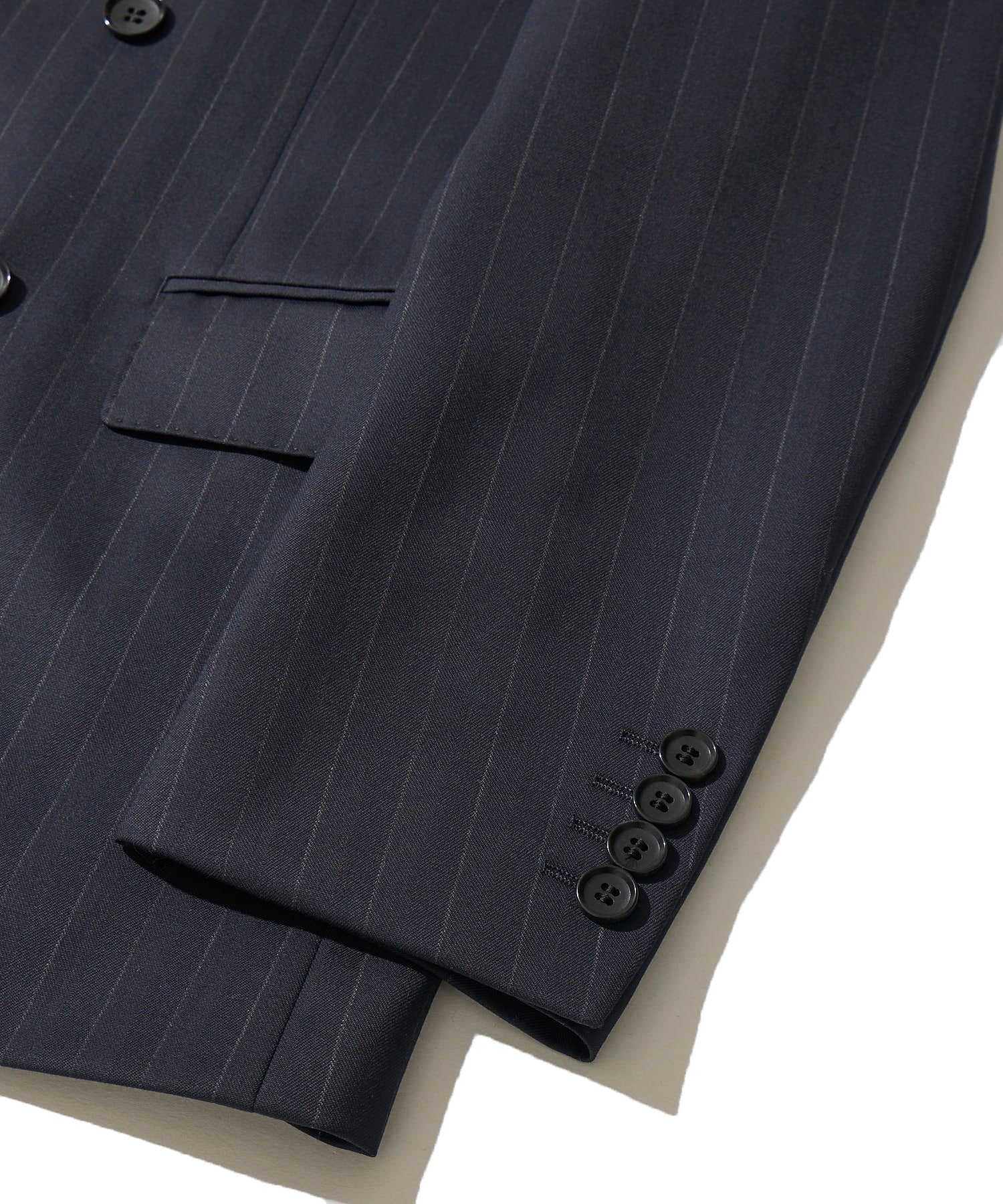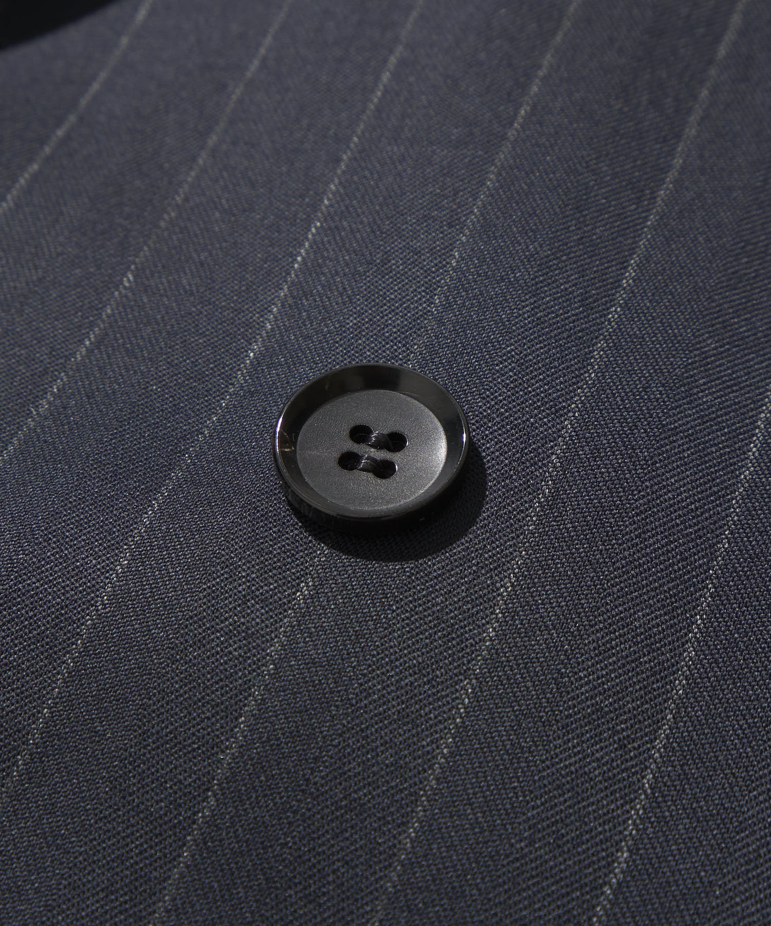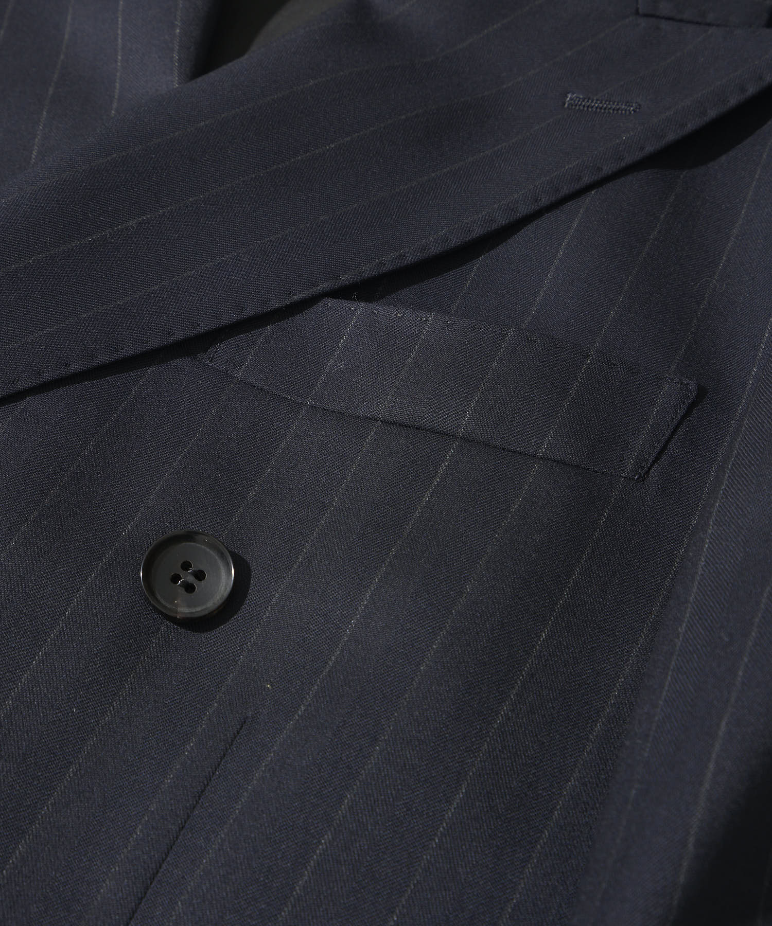 ・約2cmの太めチョークストライプ。裏地キュプラ100%+本水牛ボタン。