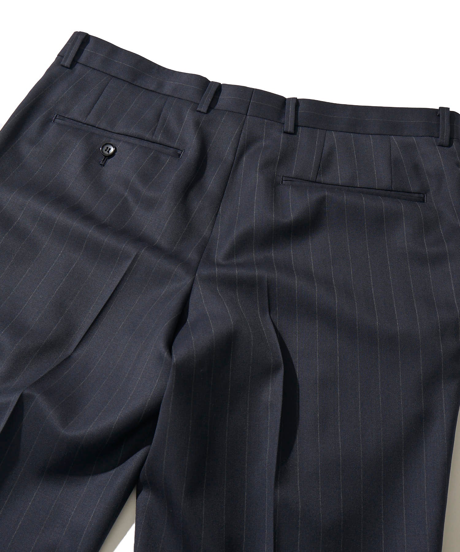 のっぺり感のないチョークストライプはタカ好みな2センチ幅のものを採用。