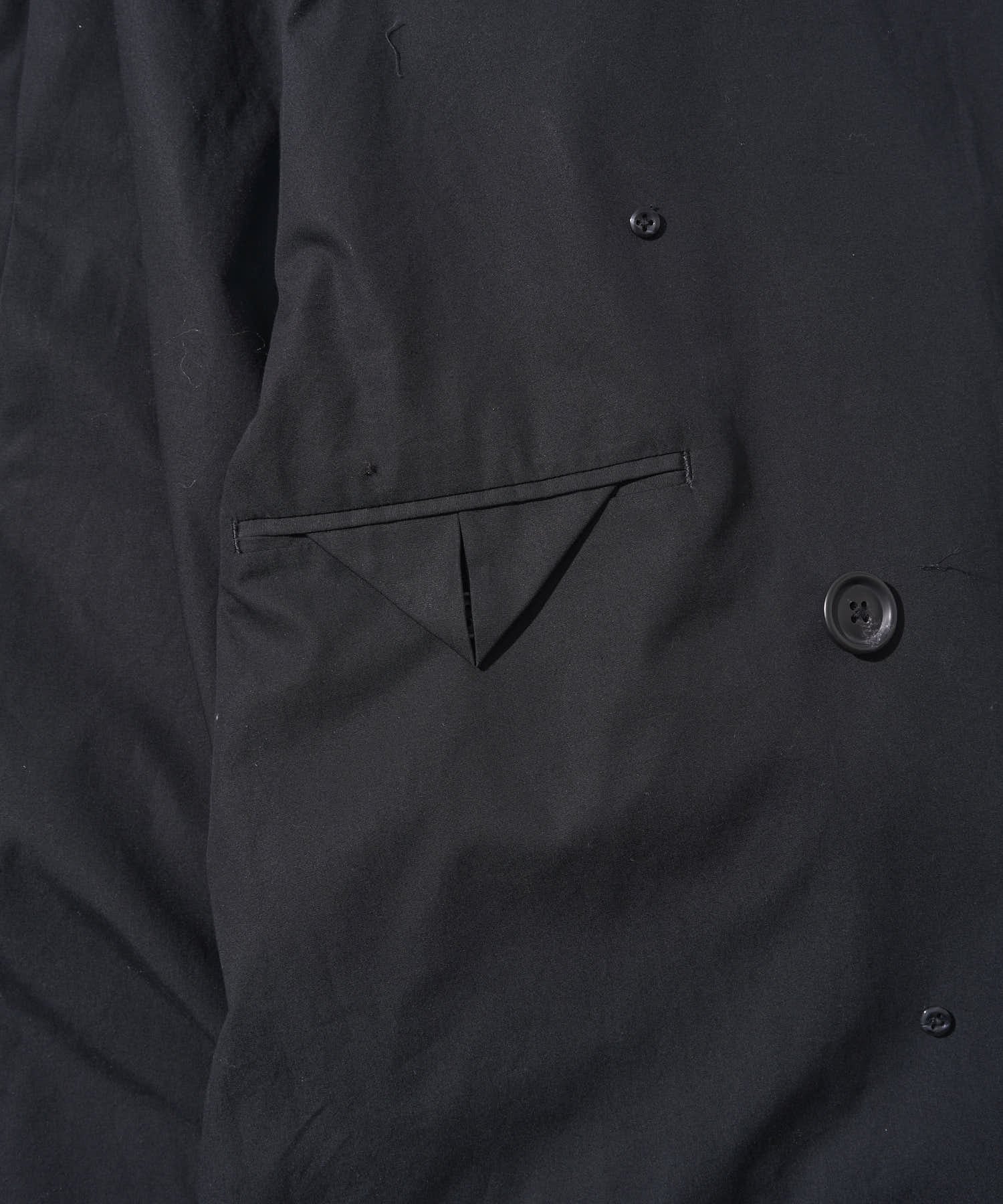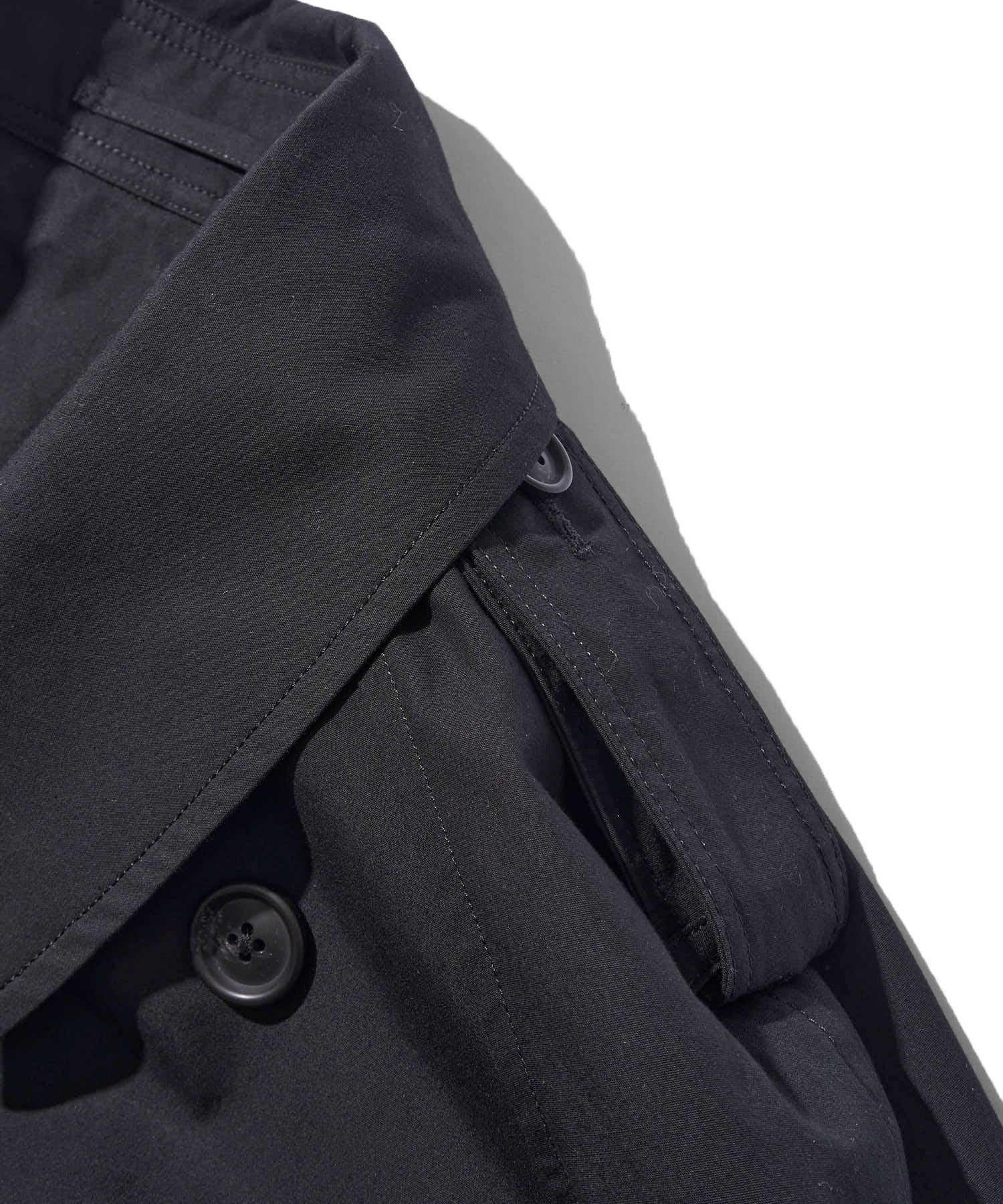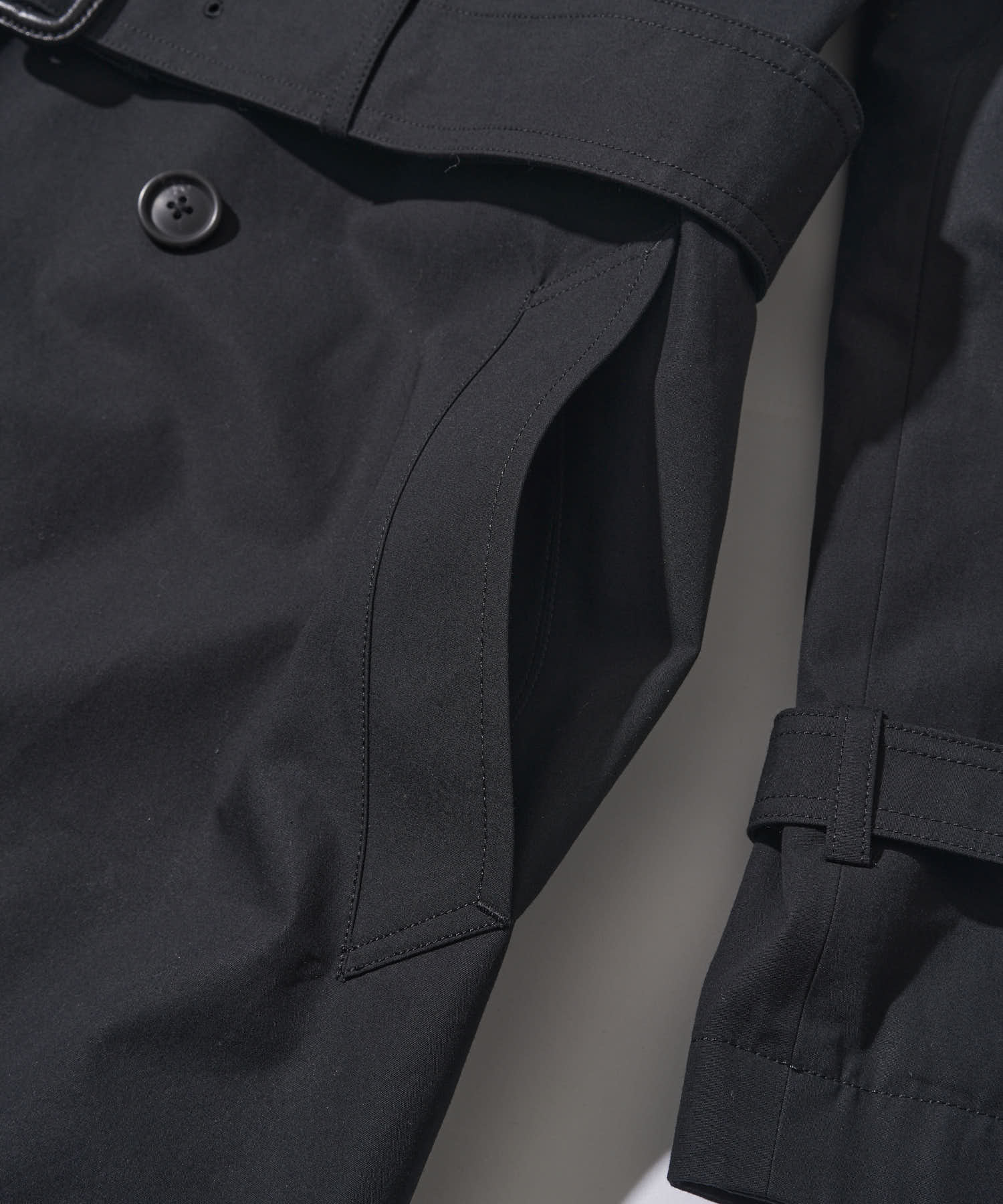 さらに、裏地にも表地の生地を用いた無双仕立て。生地を“2枚合わせる”贅沢により、通常のコート以上の生地量が生む落ち感、動いたときの陰影、そして静かな高級感。黒の深さがいっそう際立つ、合わせやすいシックなブラックに仕上げています。
