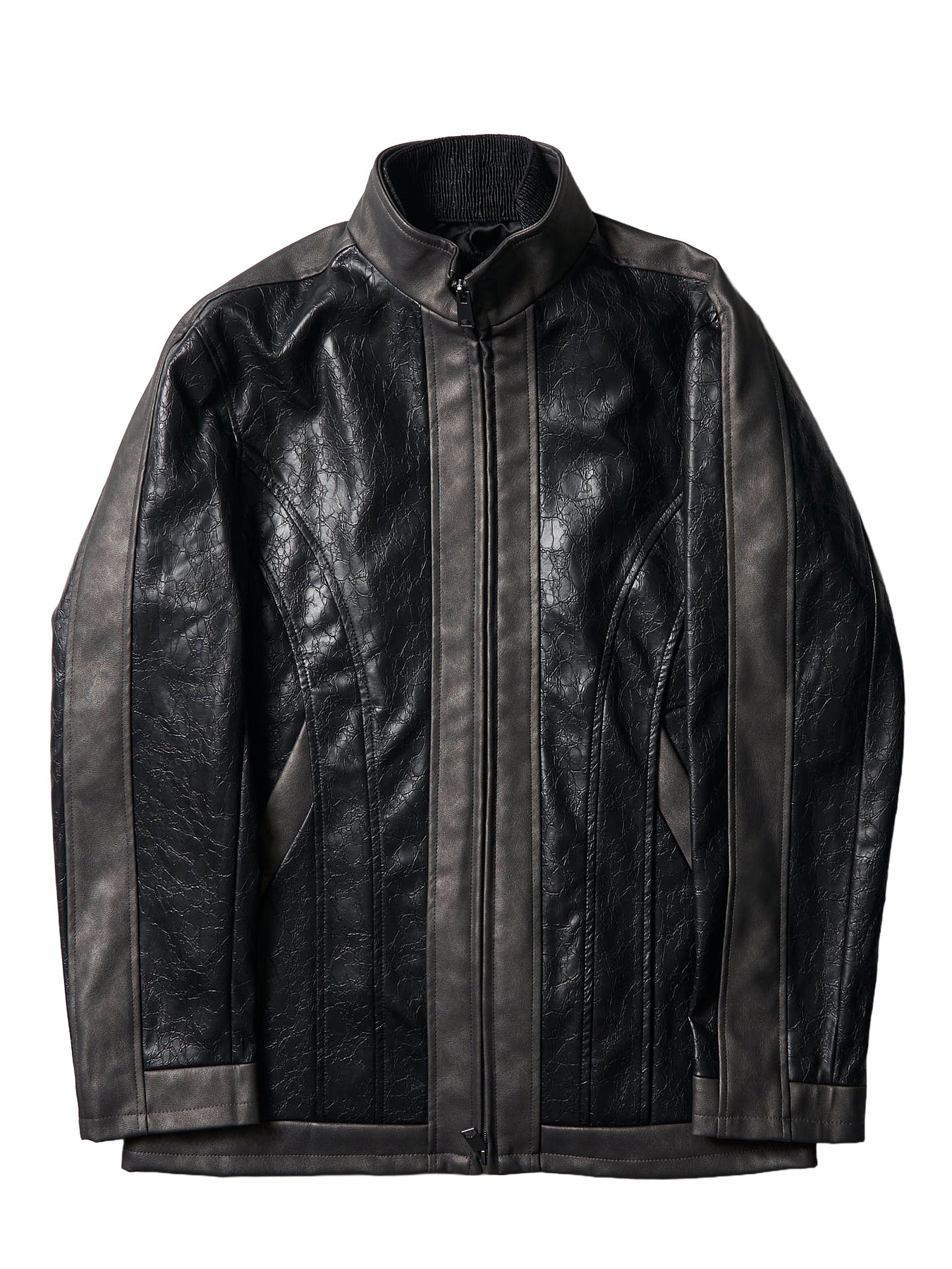 新デザインのブルゾンの登場。クラッキングエコレザー素材を採用し、切替デザインでアクセントをつけております。取り外し可能なインナー付き■サイズ■素材 表地ポリウレタン 50%ポリエステル 25%綿 25%裏地ポリエステル 100%別地ポリウレタン 50%ポリエステル 50%■原産国 中国製