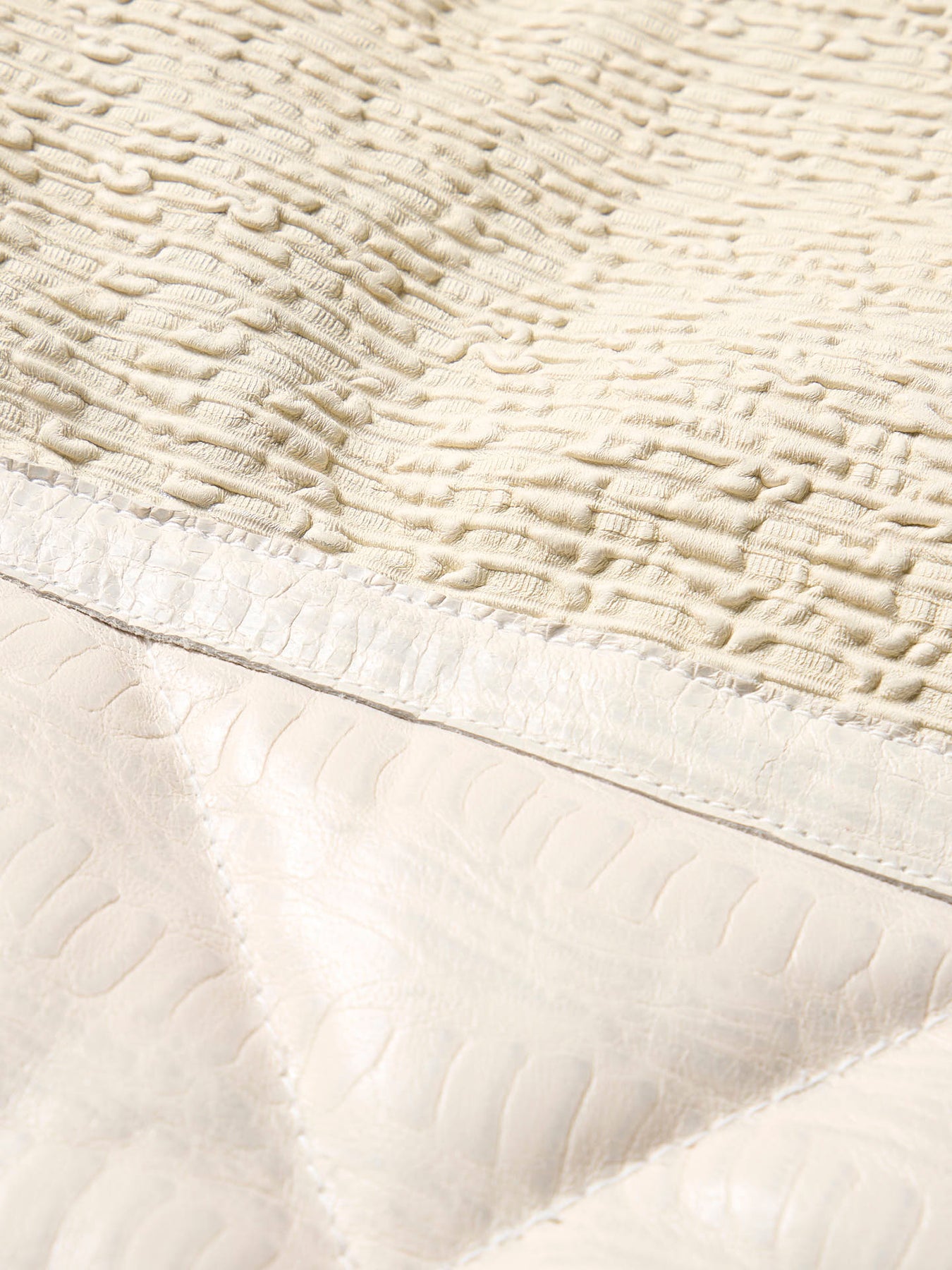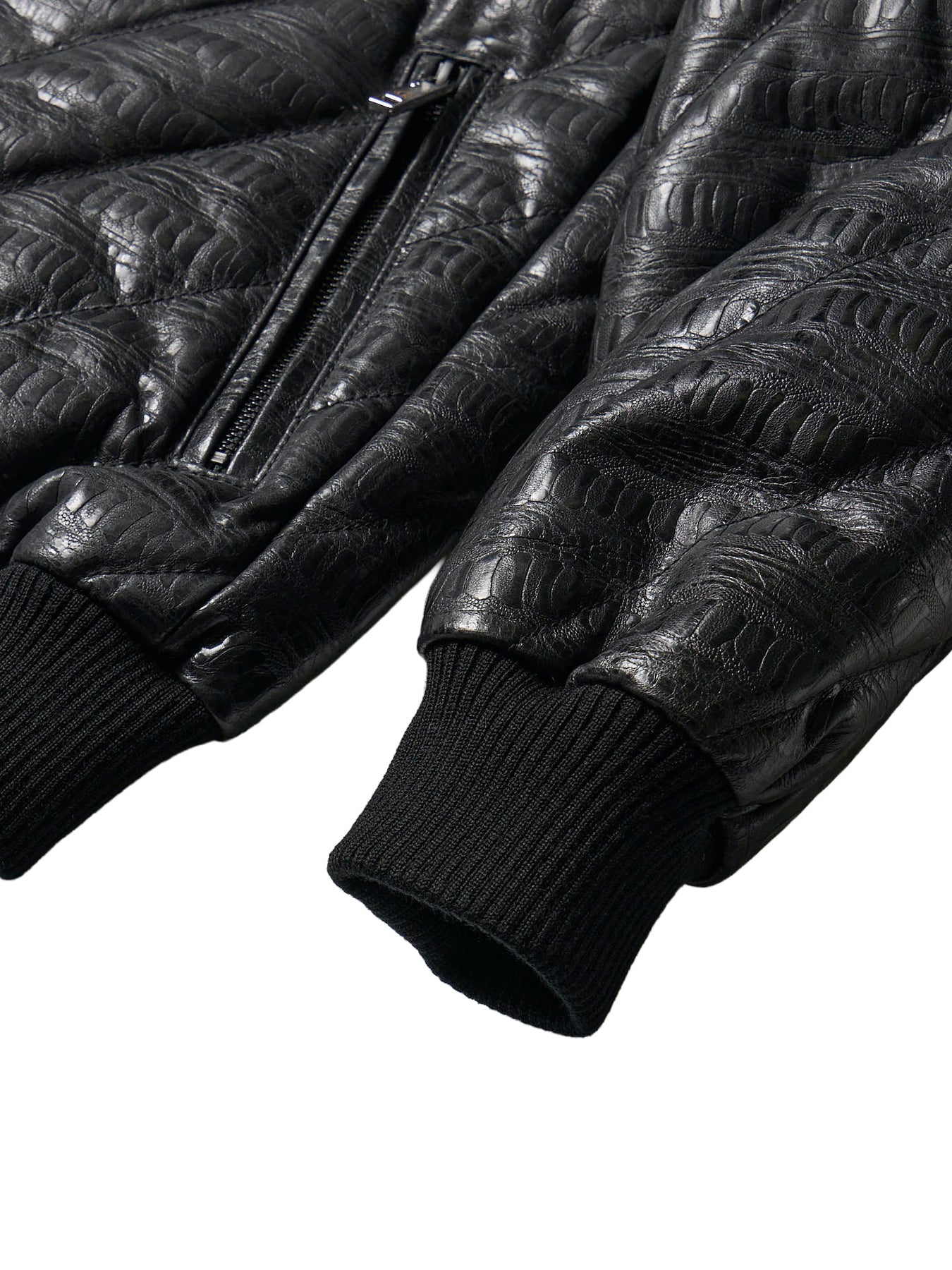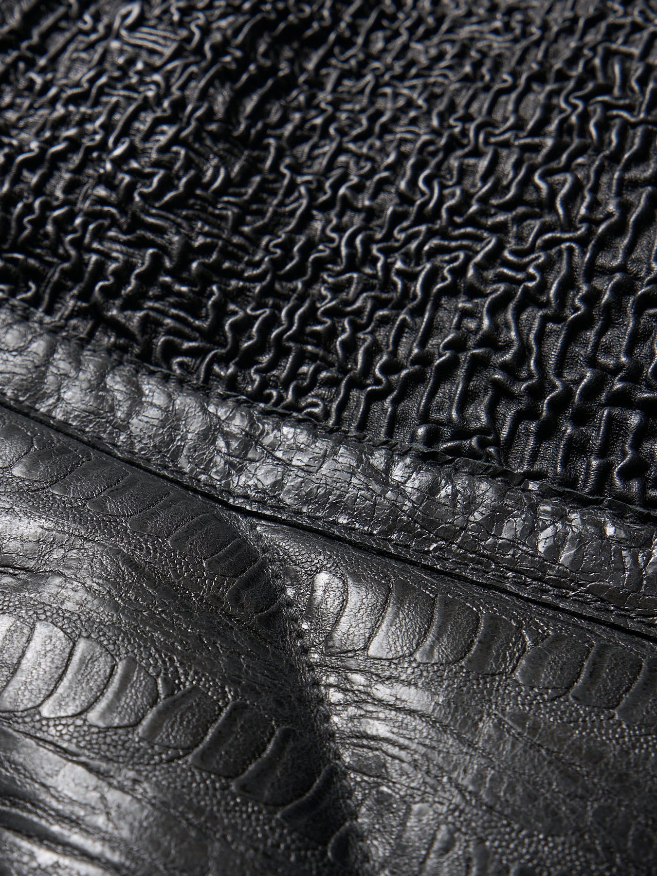 柔らかくしなやかなシープレザーに型押し加工を施し、上品な光沢とテクスチャーが印象的です。