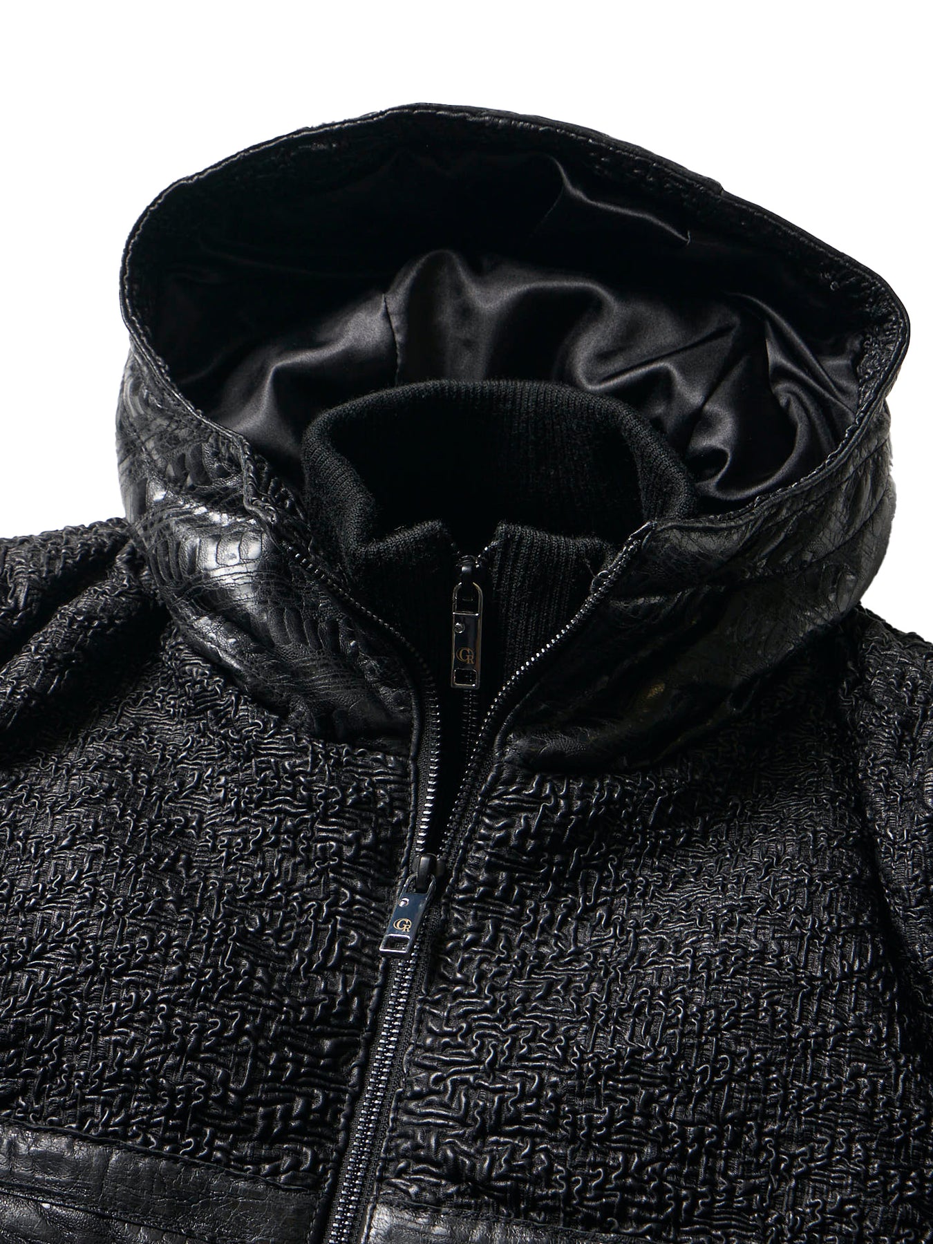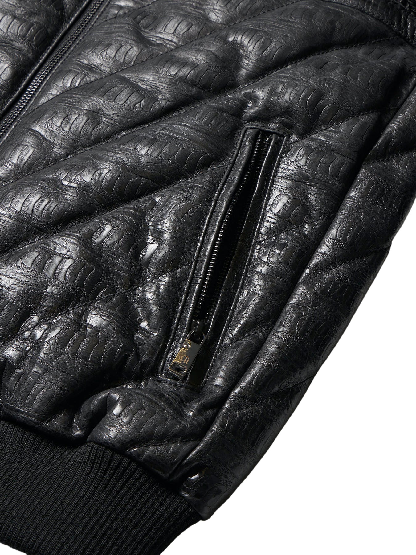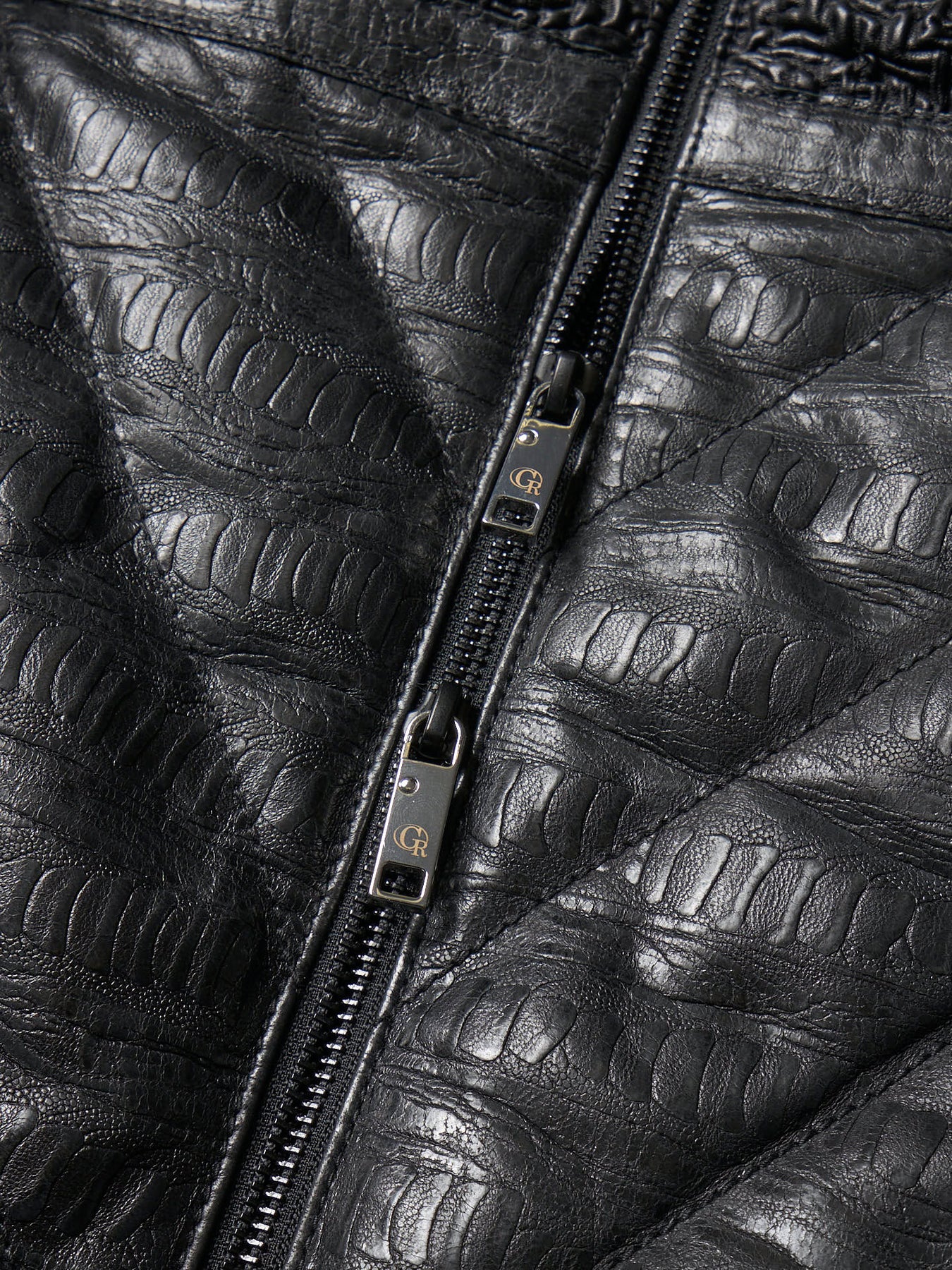 柔らかくしなやかなシープレザーに型押し加工を施し、上品な光沢とテクスチャーが印象的です。