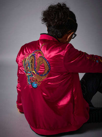 【11月7日販売開始】"漆黒の太陽"ドラゴン刺繍リバーシブルスカジャン