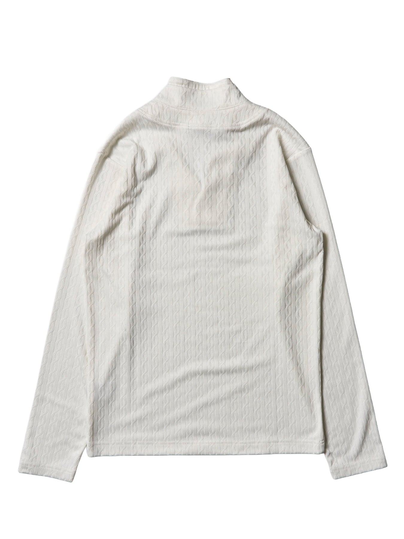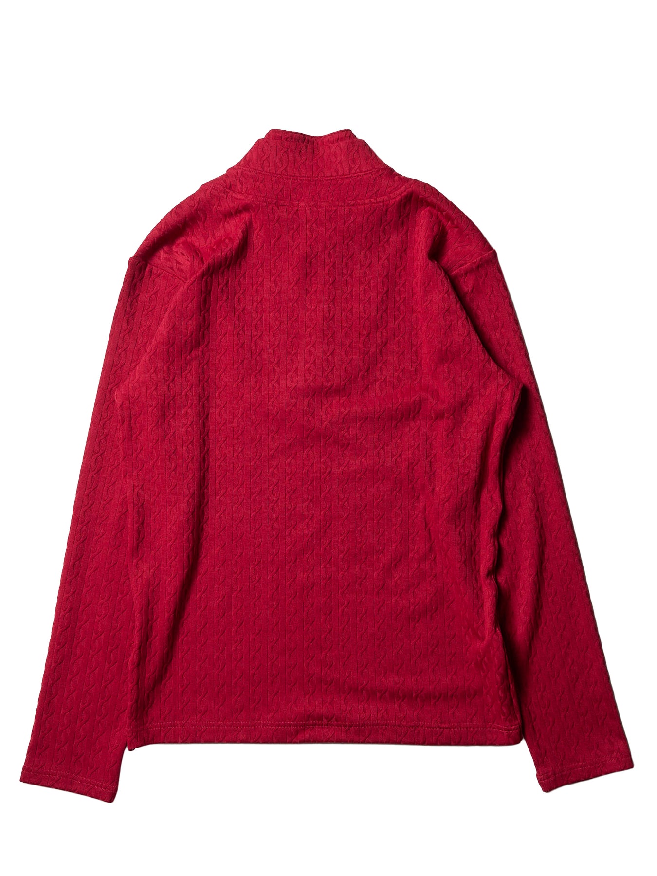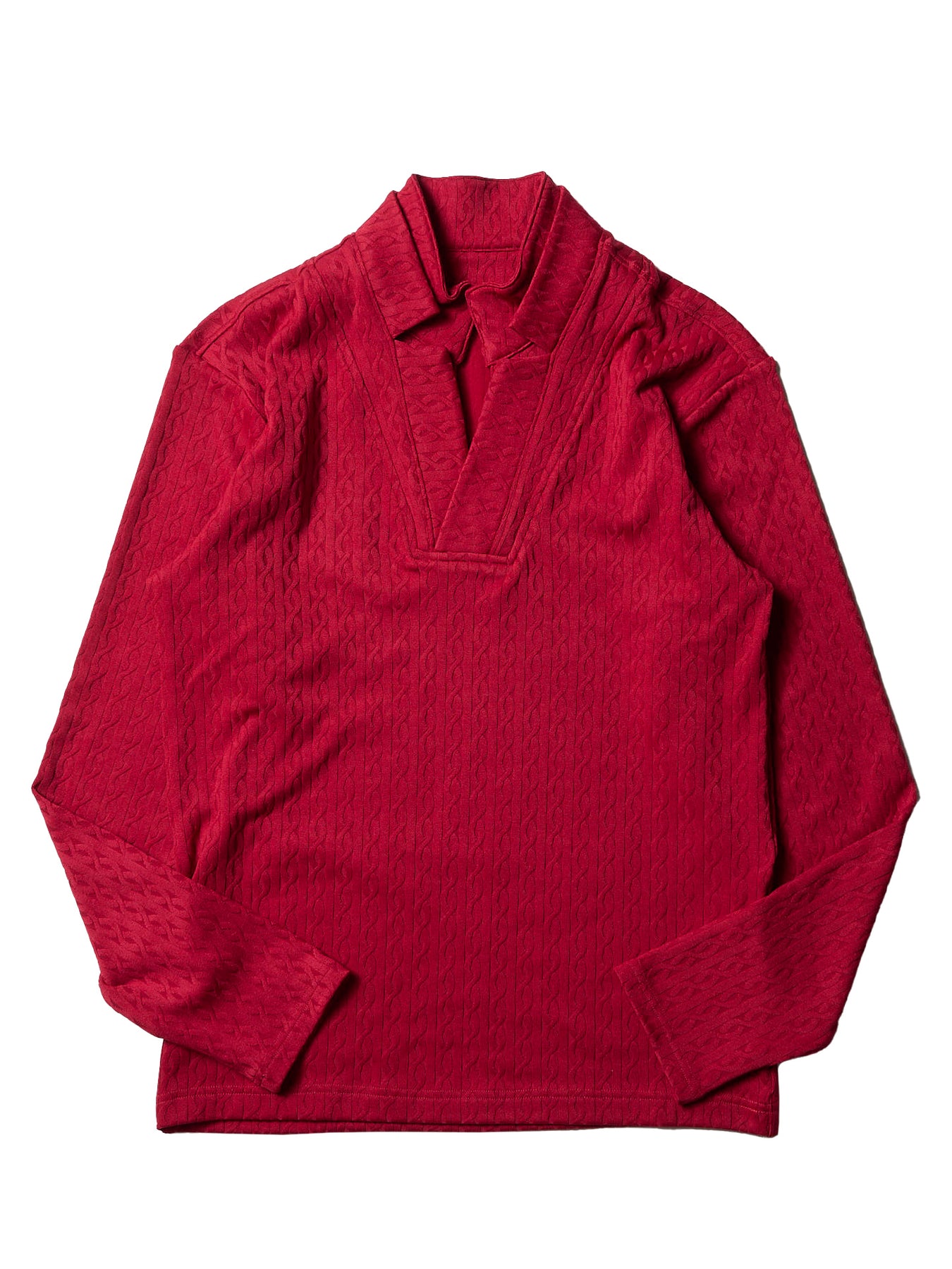 新デザインのカットソーが登場。ケーブル柄ジャガード素材を採用し、新デザインのレイヤースタンドカラーに落とし込みました。差し色のレッドを含む3色展開。■サイズ M:着丈67 身幅48 肩幅42 袖丈61 裾幅44L:着丈69 身幅54 肩幅46 袖丈61 裾幅50LL: 着丈69 身幅60 肩幅50 袖丈61 裾幅56■素材 ポリエステル 95%ポリウレタン 5%■原産国 中国製