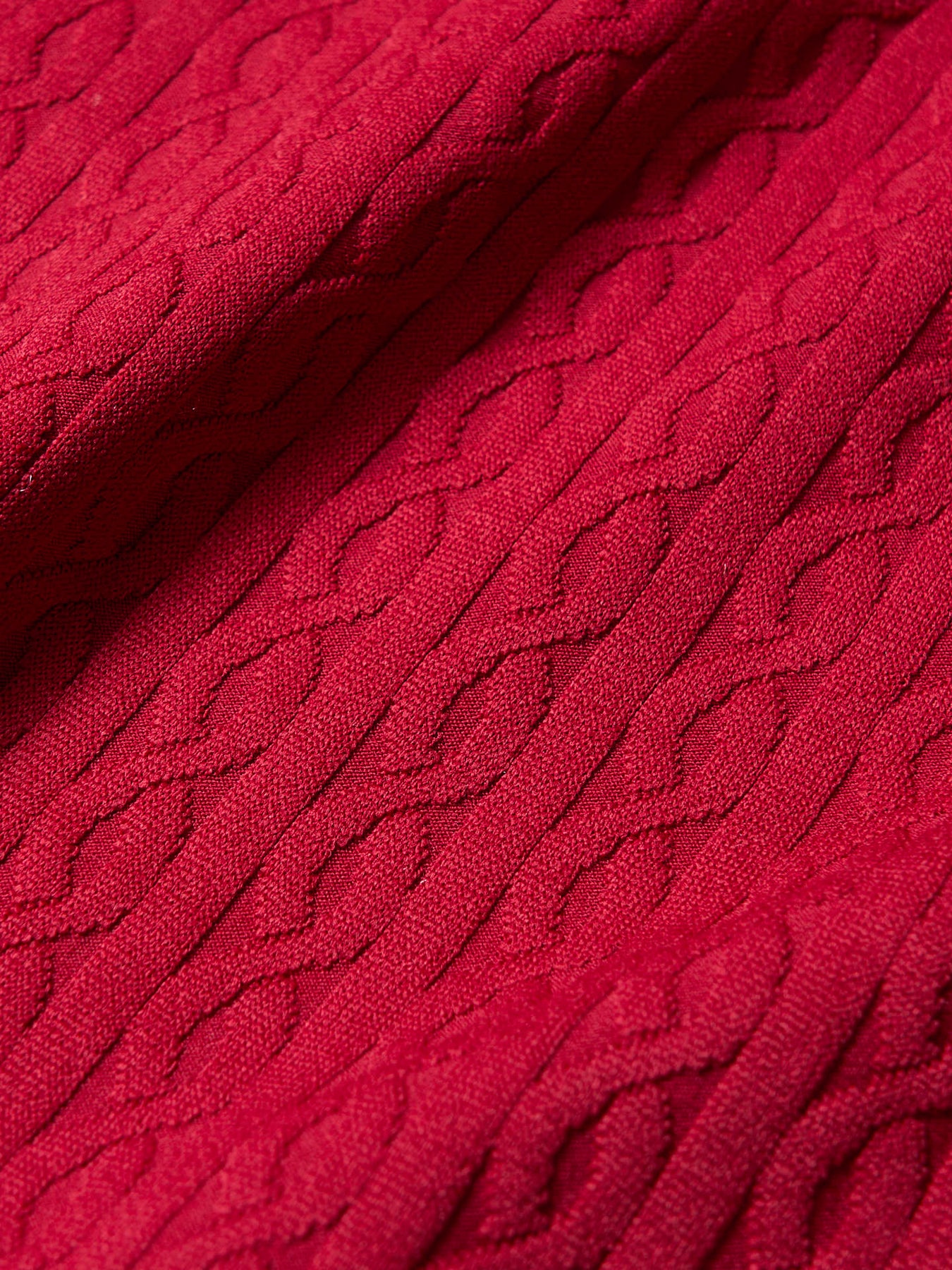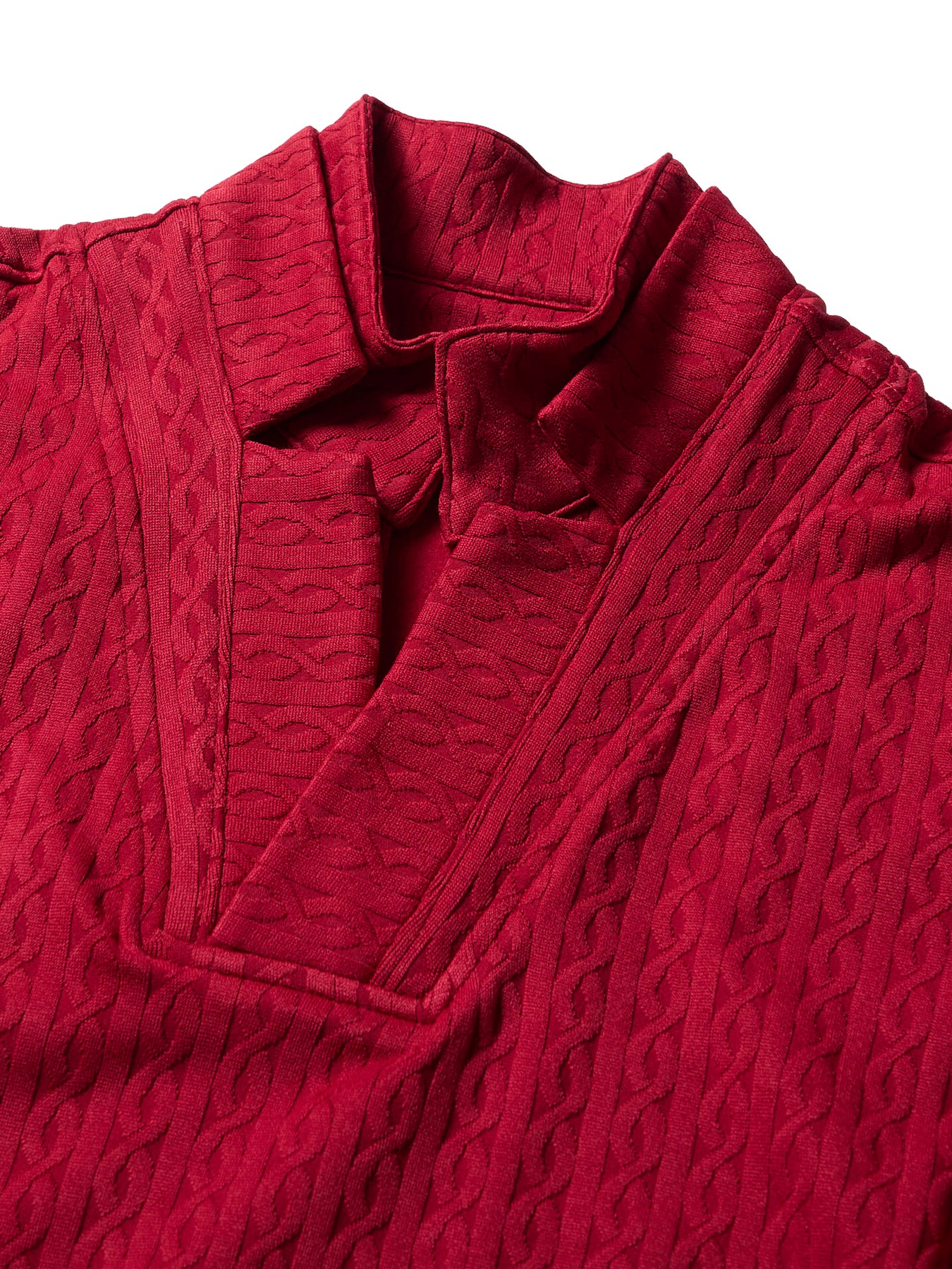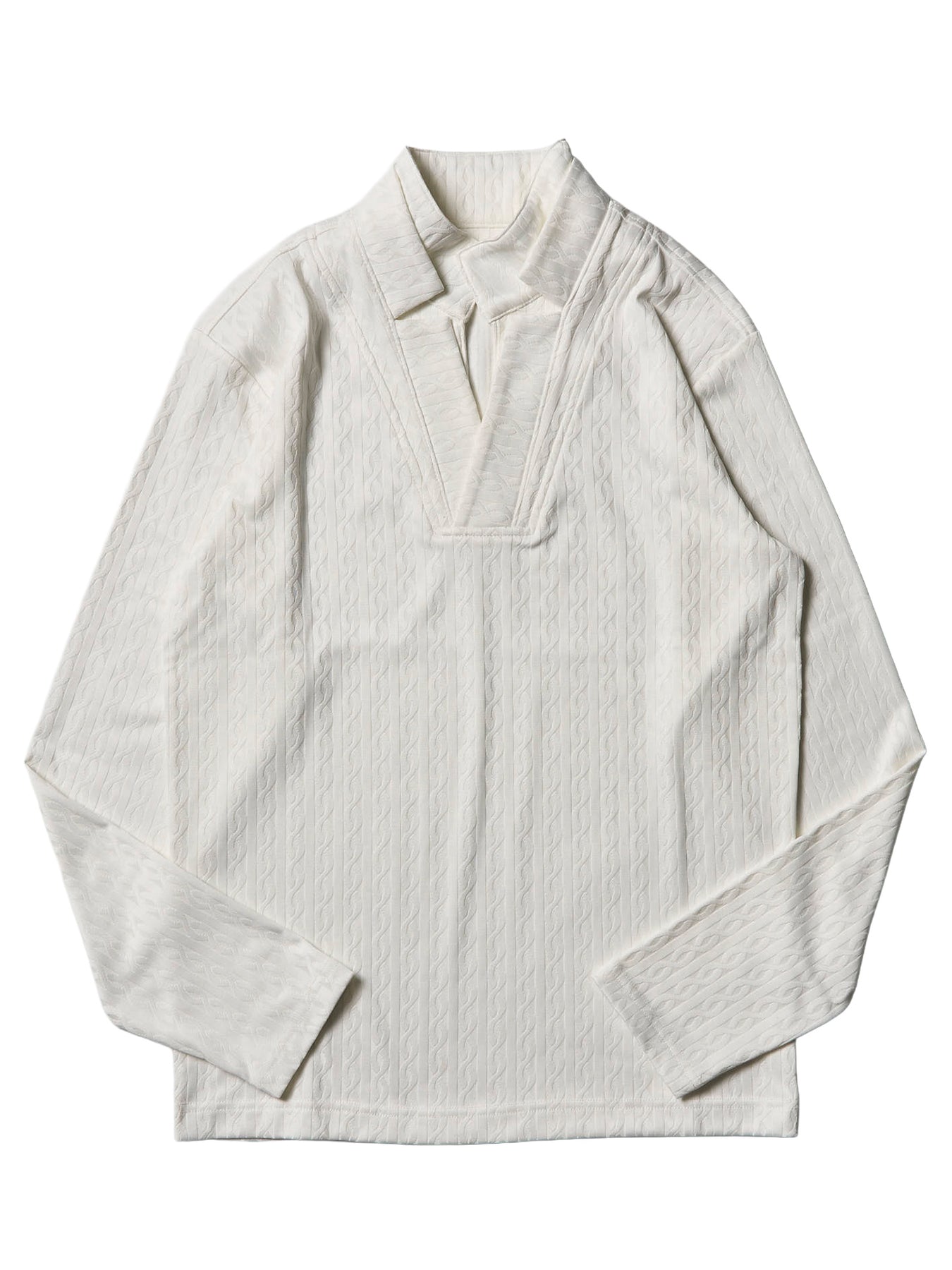 新デザインのカットソーが登場。ケーブル柄ジャガード素材を採用し、新デザインのレイヤースタンドカラーに落とし込みました。差し色のレッドを含む3色展開。■サイズ M:着丈67 身幅48 肩幅42 袖丈61 裾幅44L:着丈69 身幅54 肩幅46 袖丈61 裾幅50LL: 着丈69 身幅60 肩幅50 袖丈61 裾幅56■素材 ポリエステル 95%ポリウレタン 5%■原産国 中国製