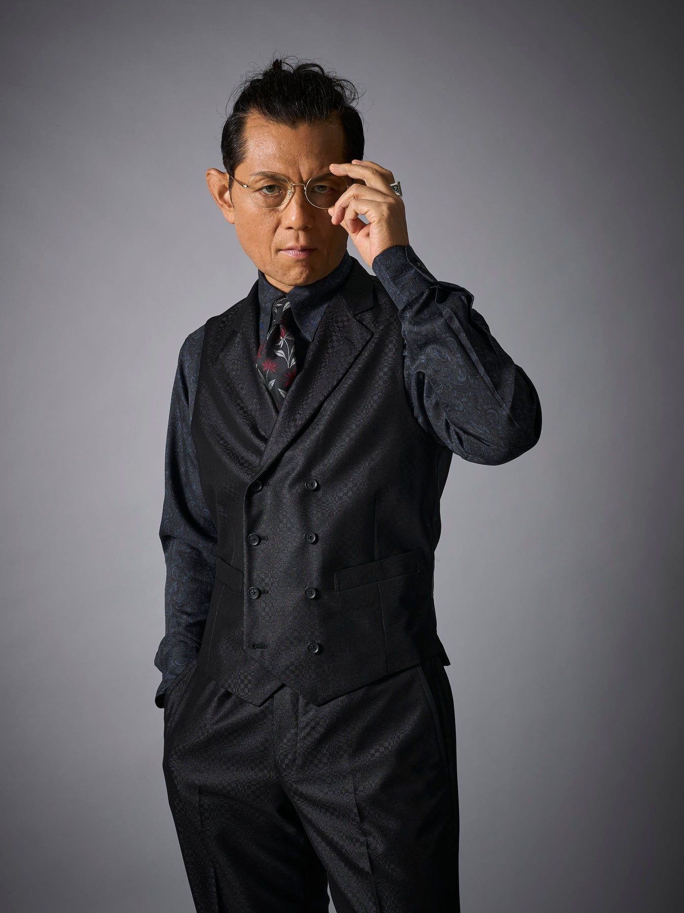 同素材のポケットチーフ付きのため、ジャケットの胸元に差し込めばVゾーンとの共通コーディネートとなり、洗練度がアップします。