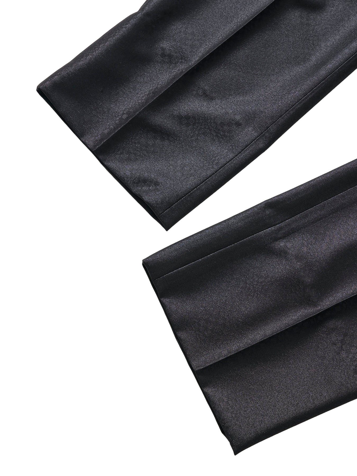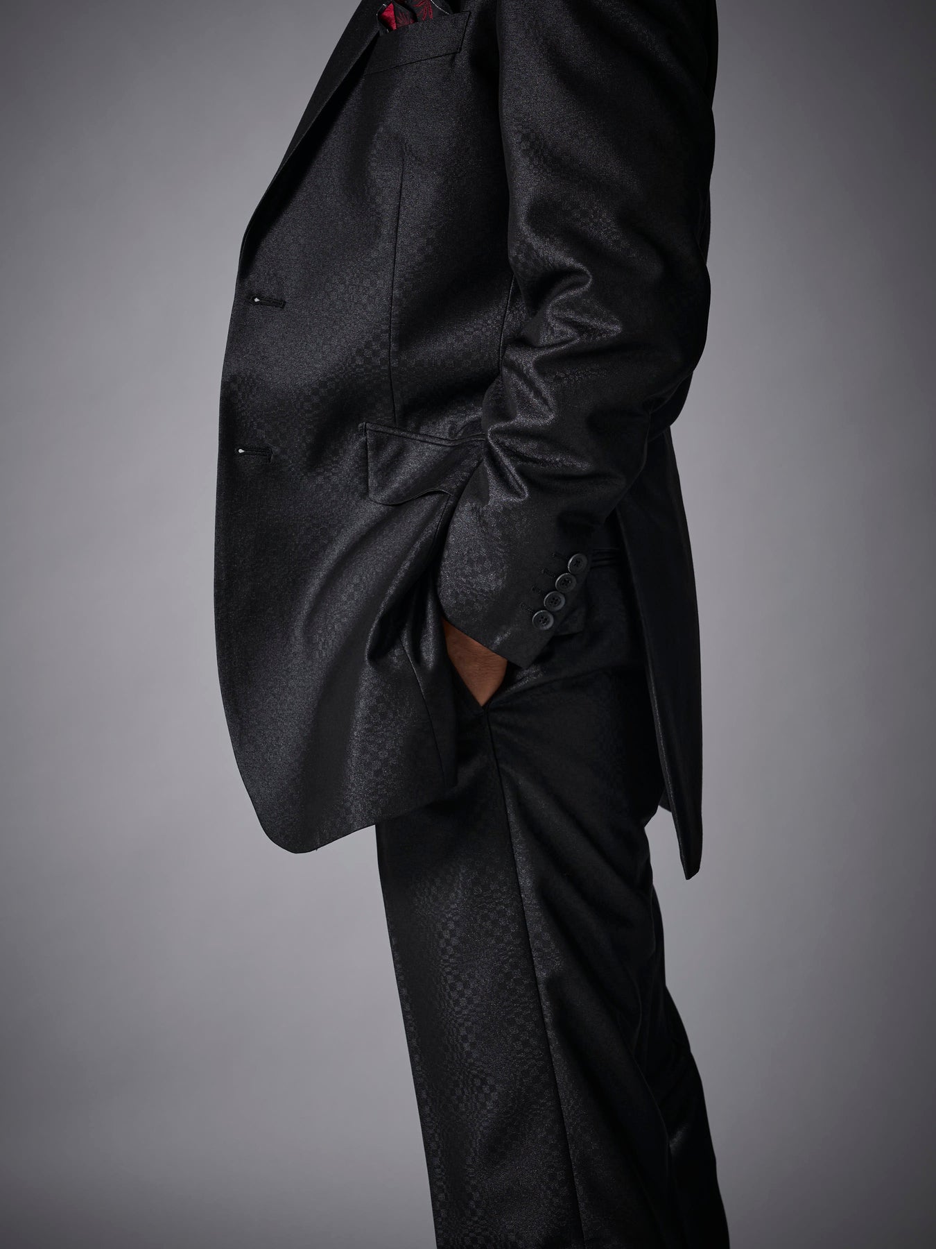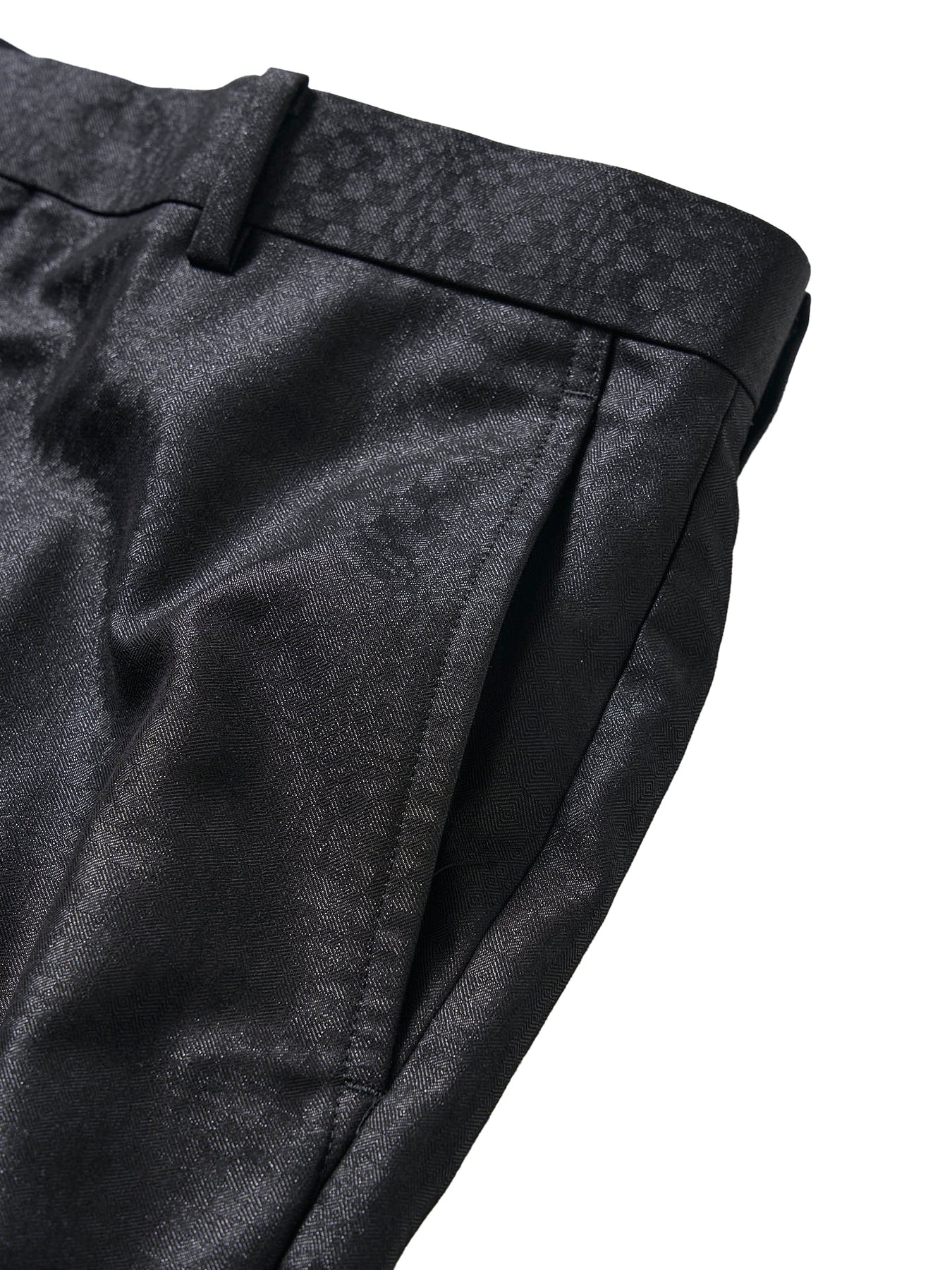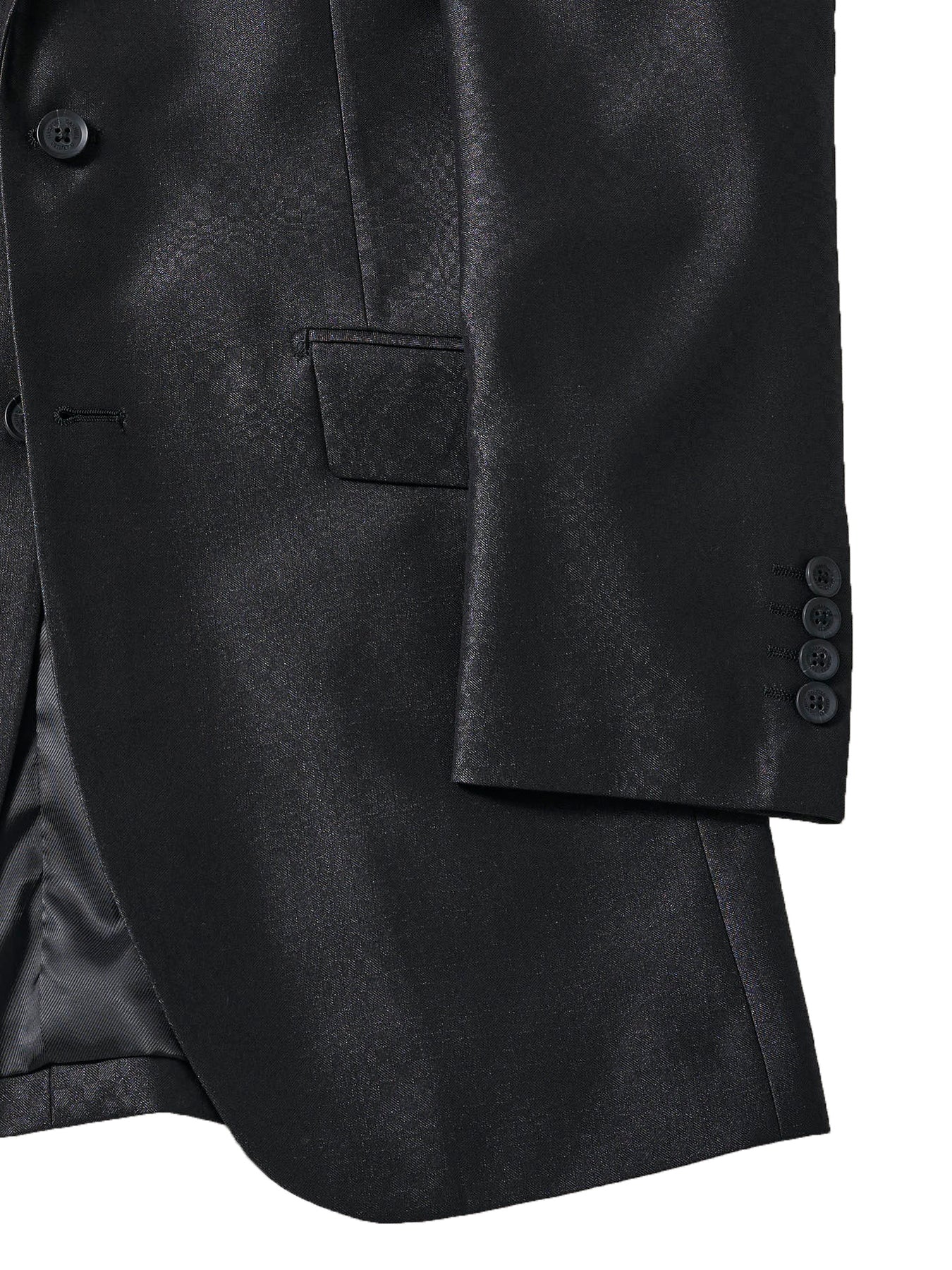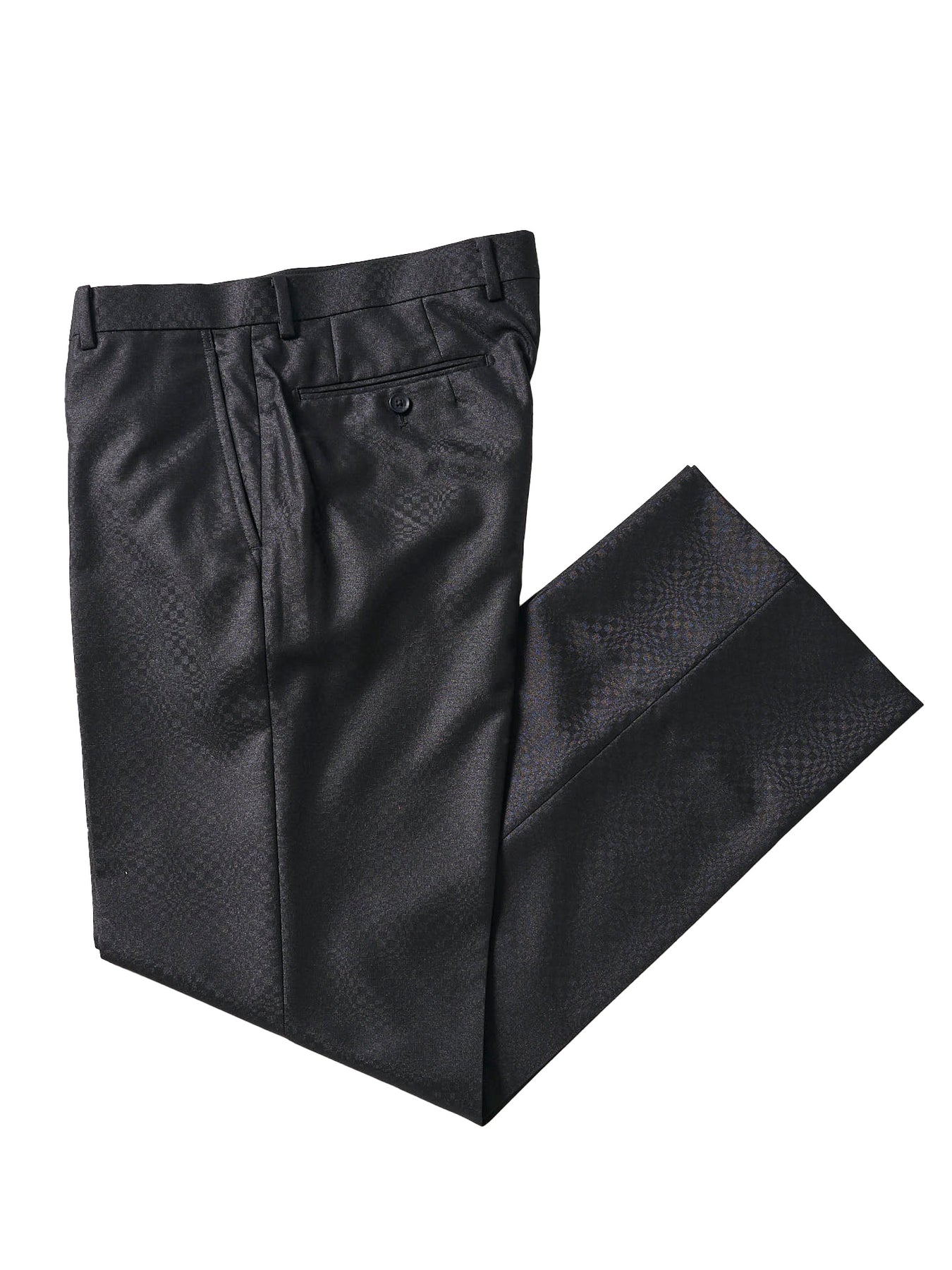 深みのあるブラックトーンに微細な光沢を添え、シックでありながら華やかさを感じさせる一着です。